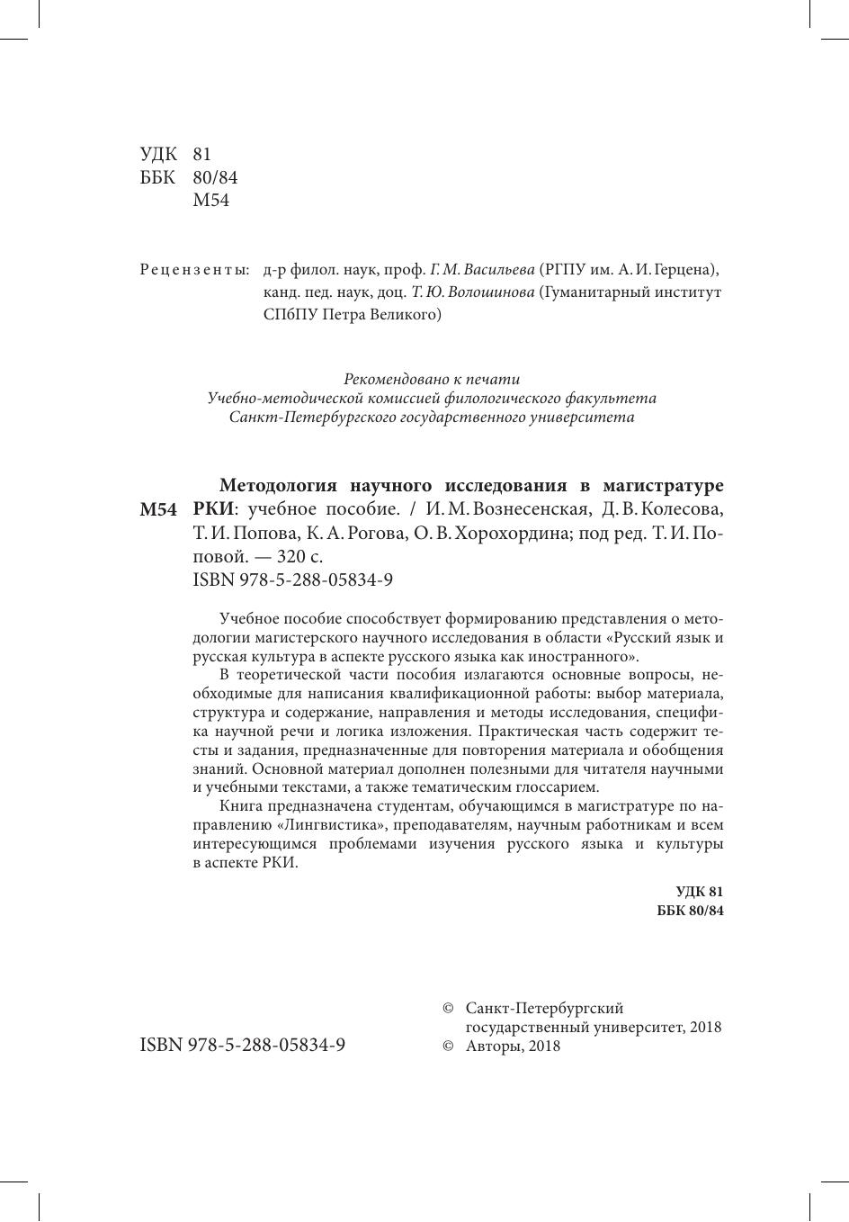 Учебное пособие способствует формированию представления о методологии магистерского научного исследования в области «Русский язык и русская культура в аспекте русского языка как иностранного».
