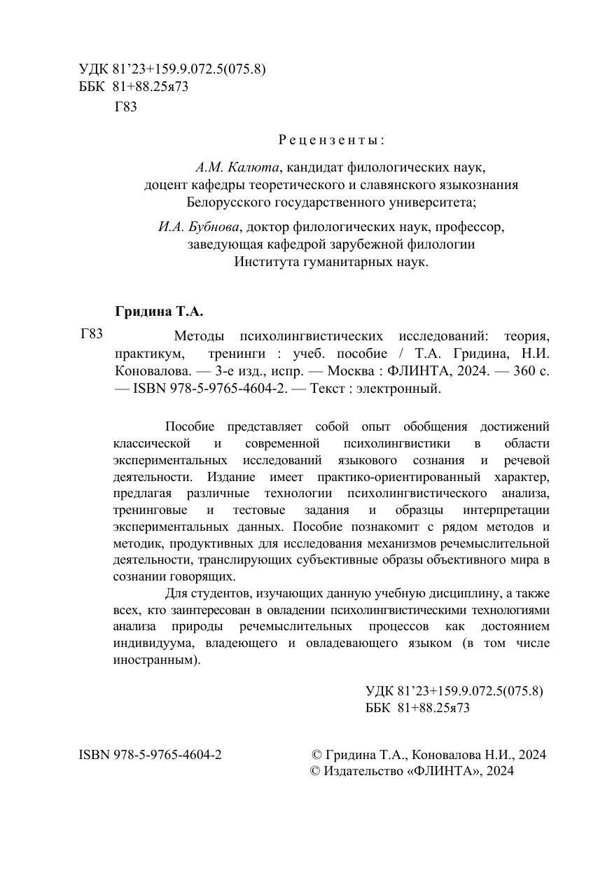 предлагая различные технологии психолингвистического анализа, тренинговые и тестовые задания и образцы интерпретации экспериментальных данных. Пособие познакомит с рядом методов и методик, продуктивных для исследования механизмов речемыслительной деятельности, транслирующих субъективные образы объективного мира в сознании говорящих.