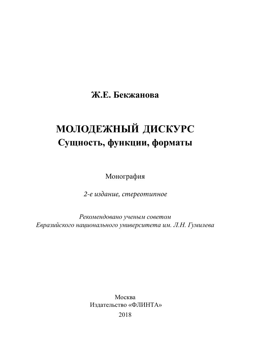 Молодежный дискурс: сущность, функции, форматы: монография