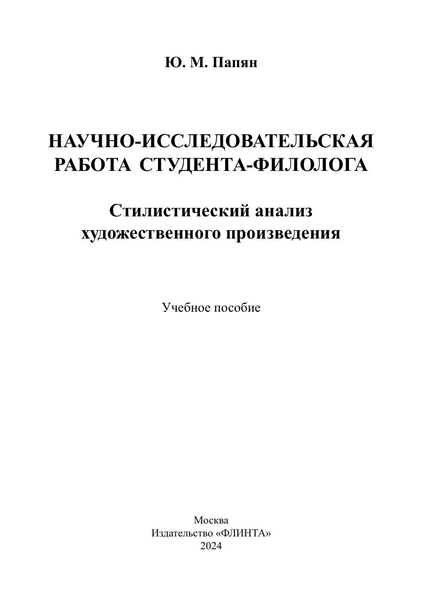 Научно-исследовательская работа студента филолога: стилистический анализ художественного произведения