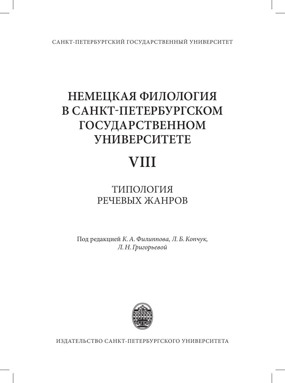 Немецкая филология в Санкт-Петербургском государственном университете. Вып. VIII: Типология речевых жанров