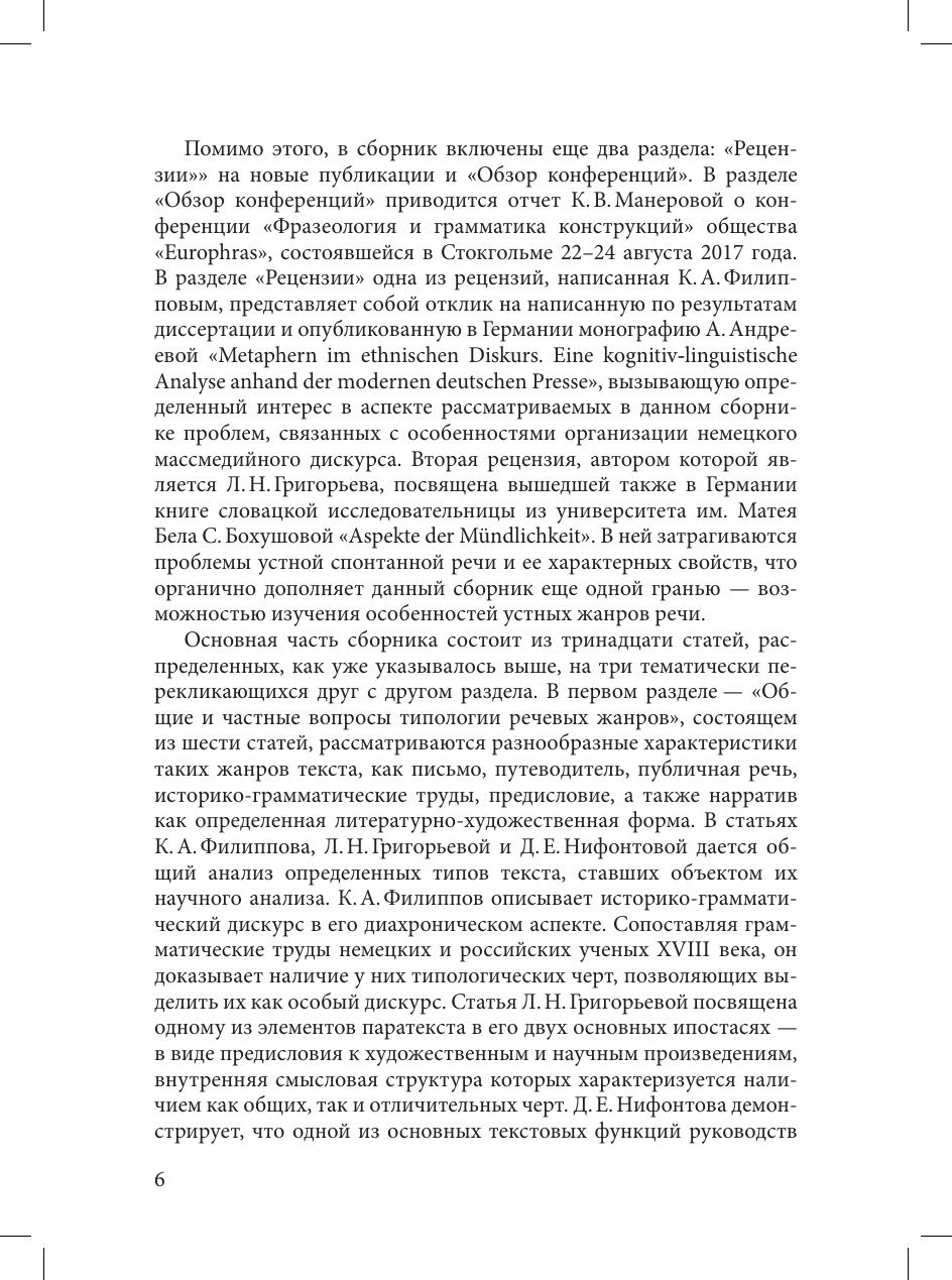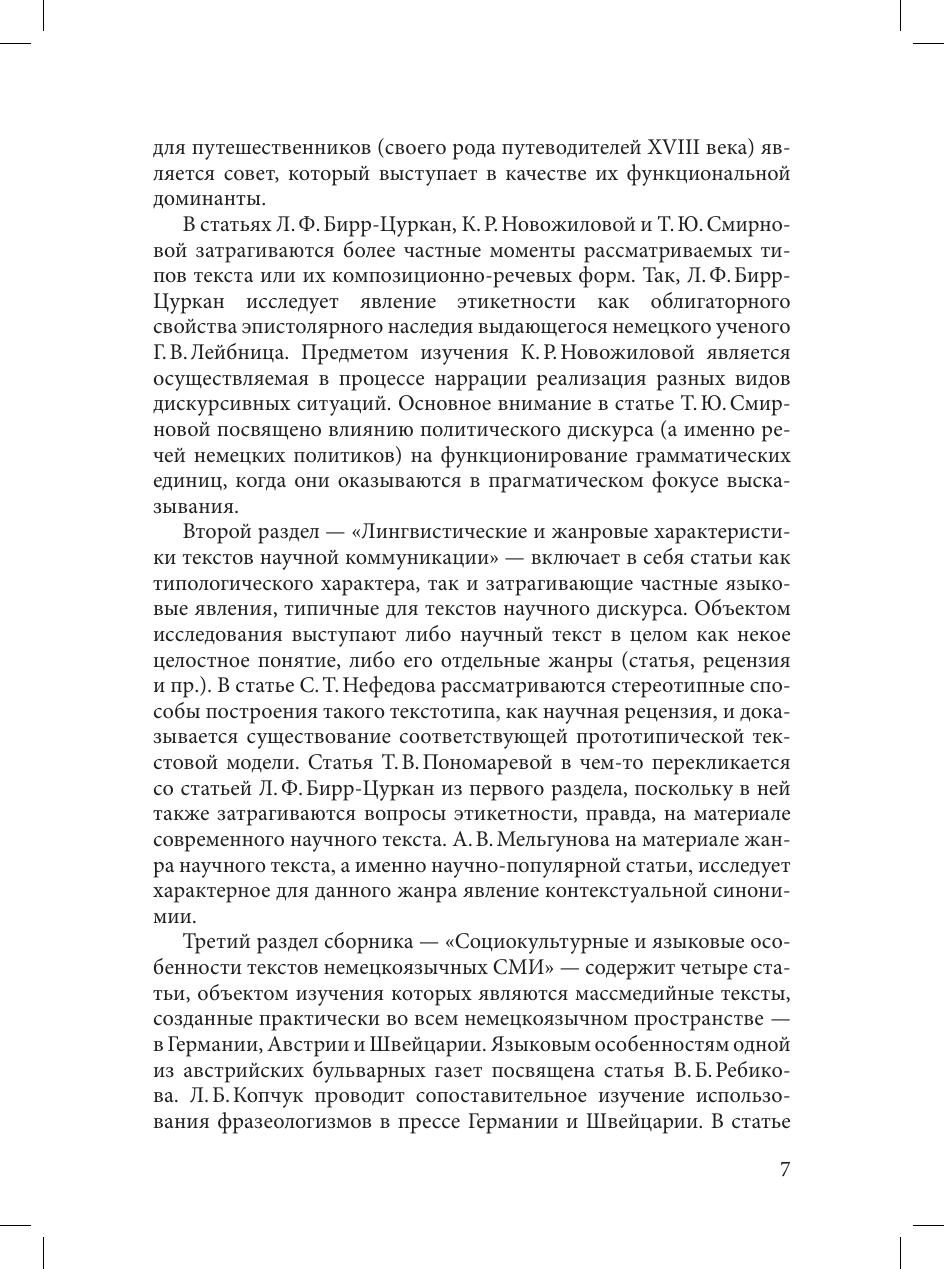 В настоящий сборник вошли исследования по актуальной проблеме современной лингвистики — выявлению и описанию лингвистических характеристик немецкоязычных речевых произведений, принадлежащих к различным жанрам. Широкая тематика издания позволила авторам с учетом коммуникативно-дискурсивного направления раскрыть тексто и лингвотипологические особенности речевых жанров на материале таких немецких дискурсов, как научный, массмедийный, художественный, утилитарный и эпистолярный. Издание рассчитано не только на специалистов в области немецкой германистики, но и на филологов широкого профиля, занимающихся изучением общих и частных проблем типологии речевых жанров.