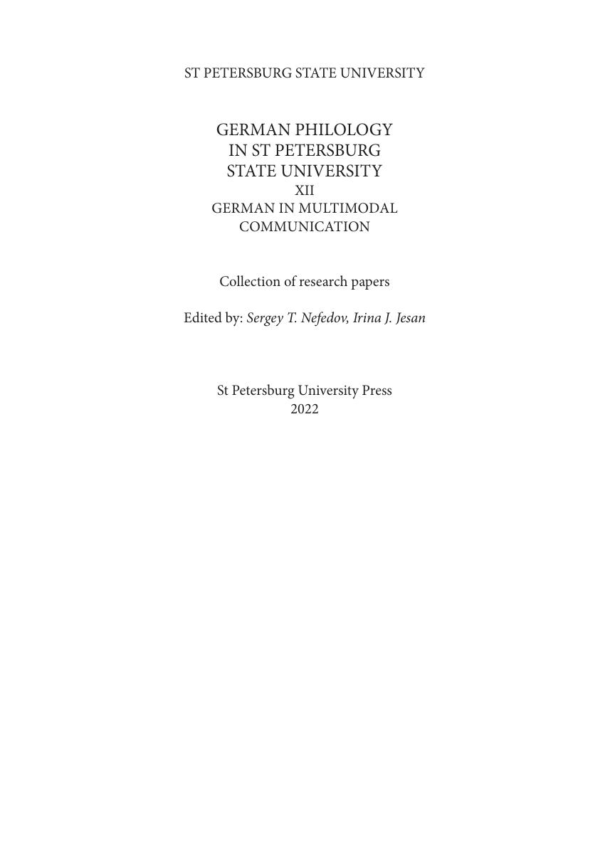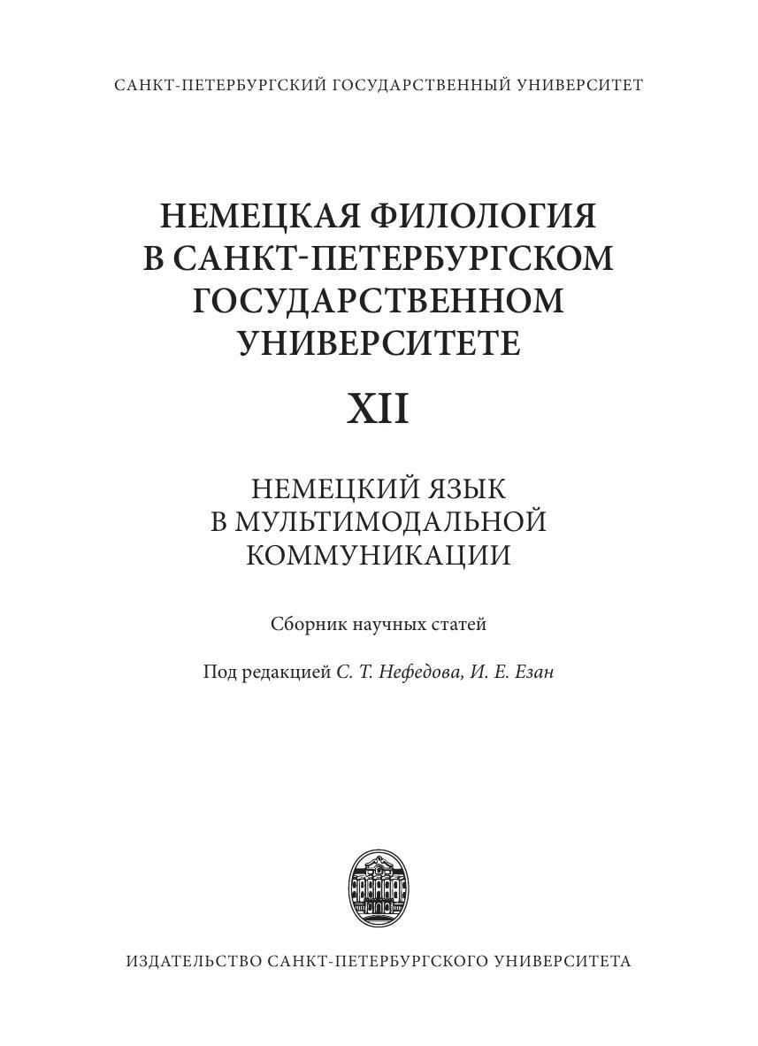 Немецкая филология в Санкт-Петербургском государственном университете. Том 12. Немецкий язык в мультимодальной коммуникации