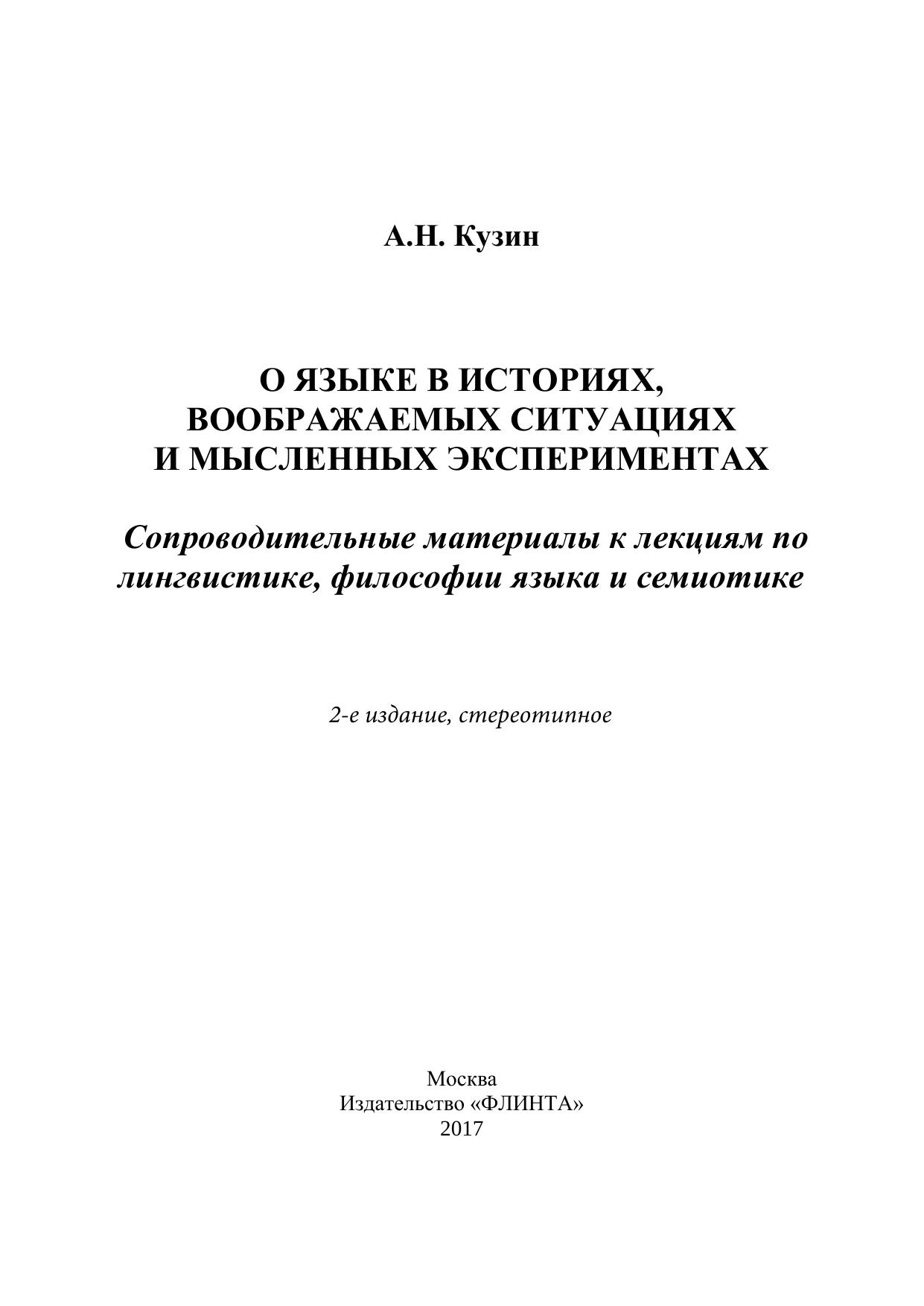 О языке в историях, воображаемых ситуациях и мысленных экспериментах. Сопроводительные материалы к лекциям по лингвистике, философии языка и семиотике