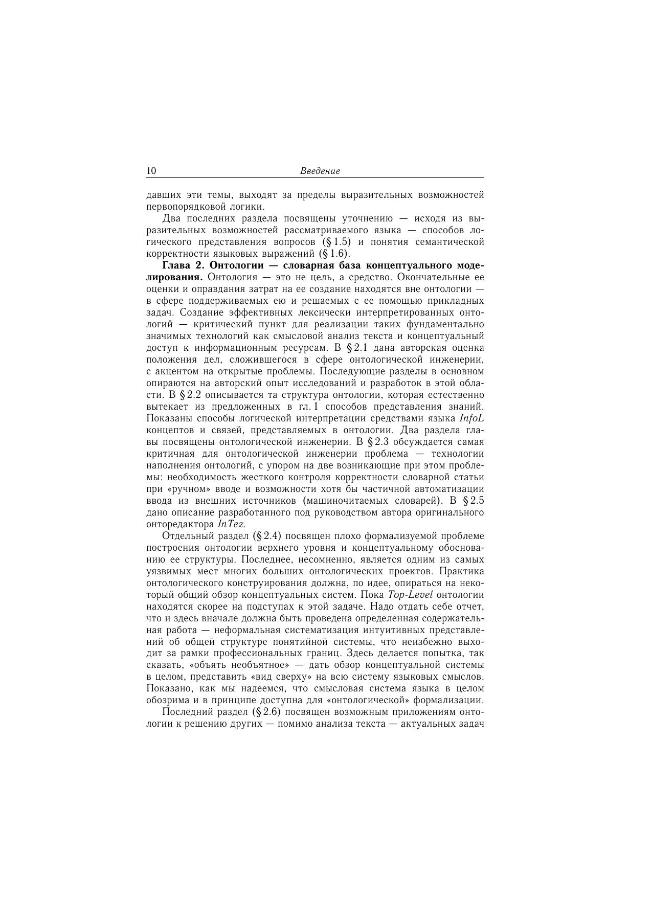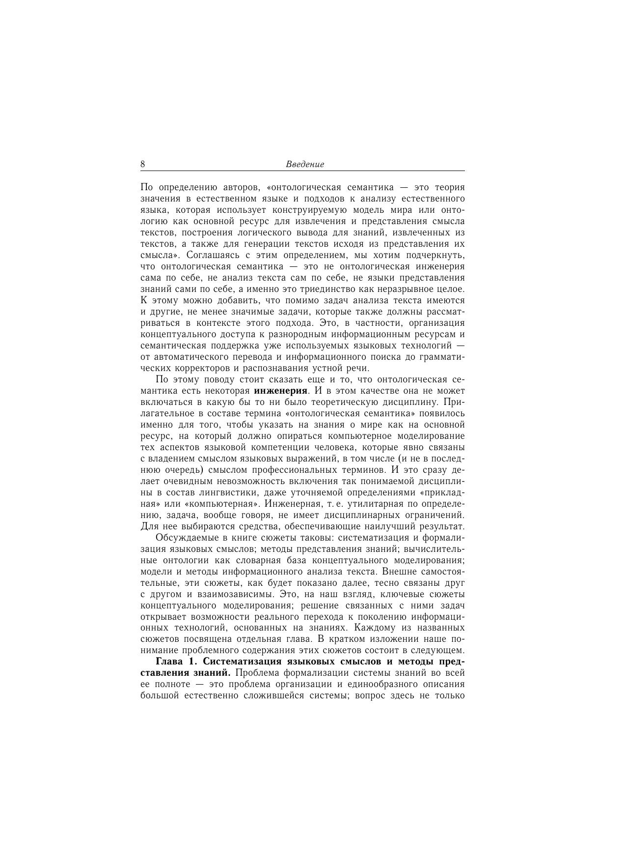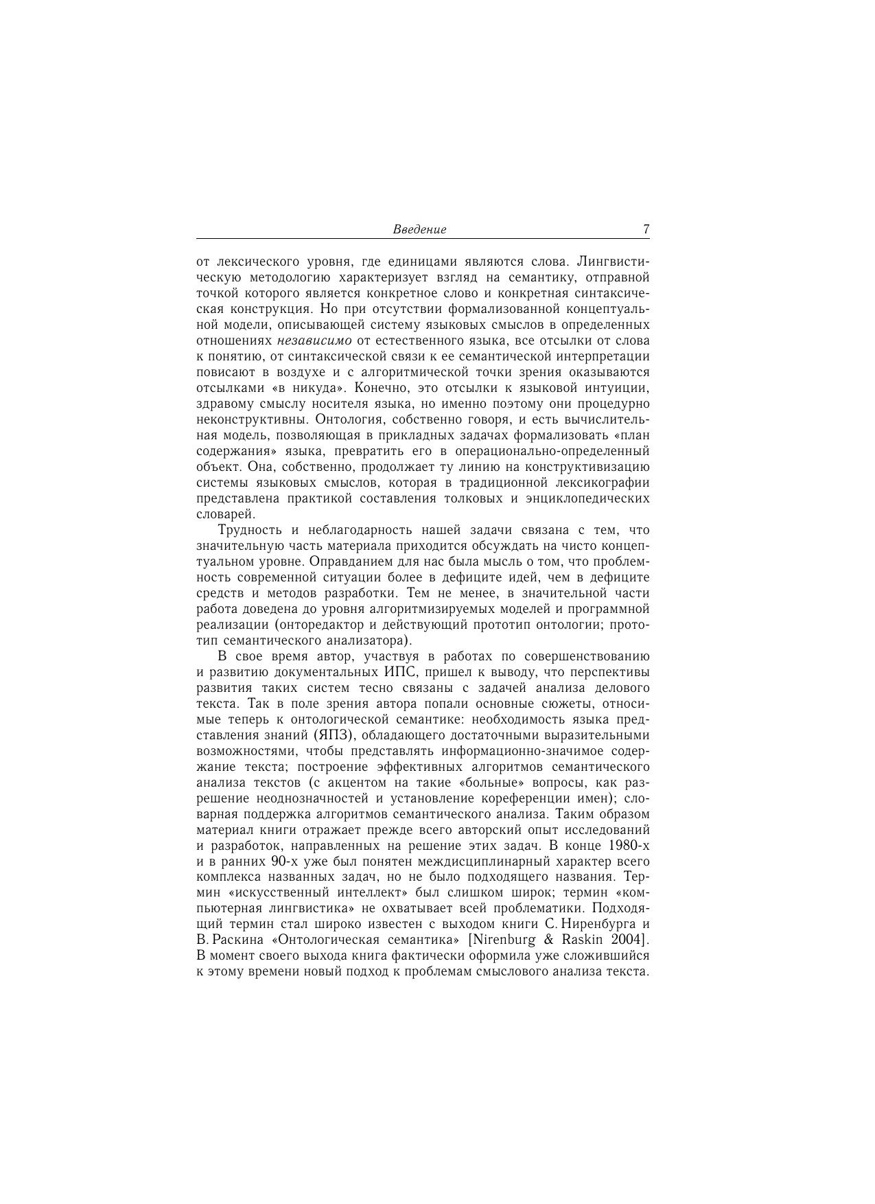 Книга имеет целью изложить в виде единой целостной концепции онтологический подход к комплексу проблем, связанных с концептуальным моделированием в целом и с задачей автоматического понимания делового текста и извлечения знаний из текста в частности. Материал книги отражает прежде всего авторский опыт исследований и разработок, направленных на практическое решение этих задач (онторедактор, семантический процессор).