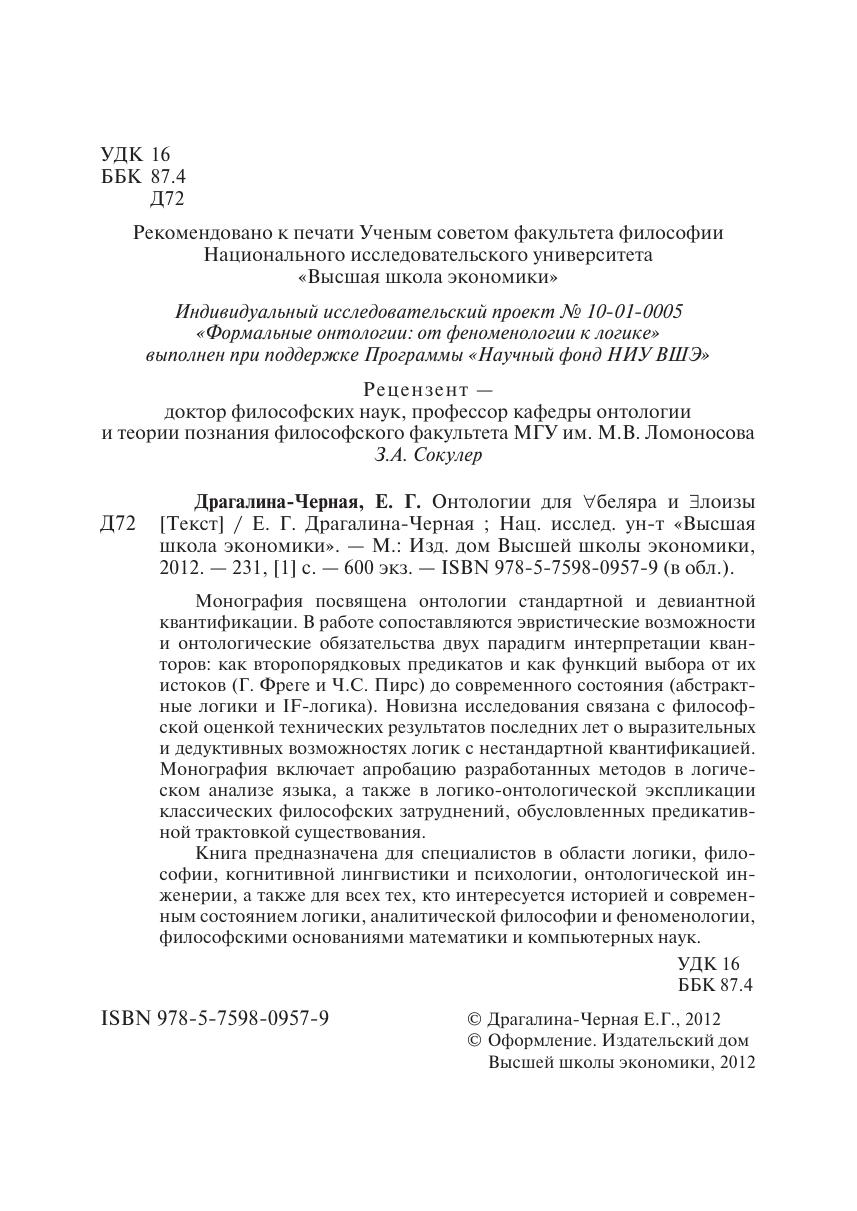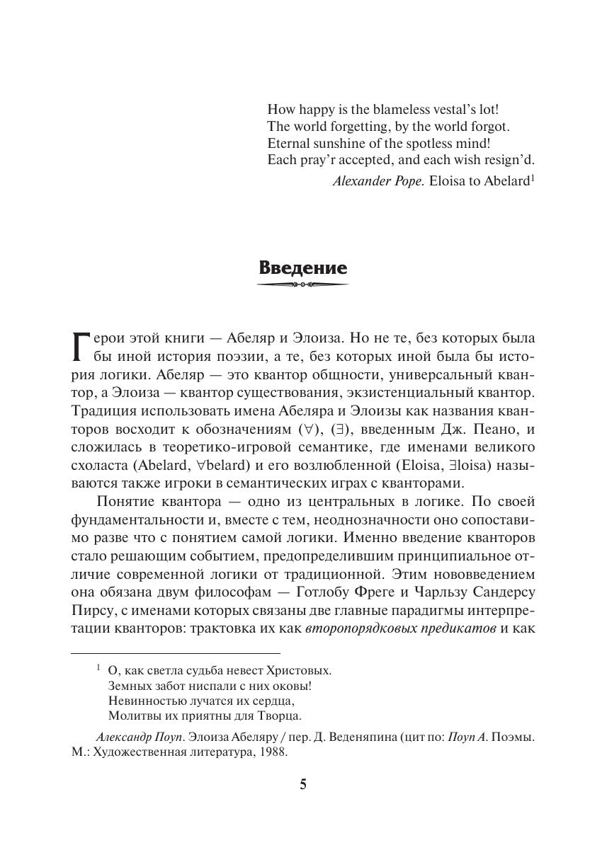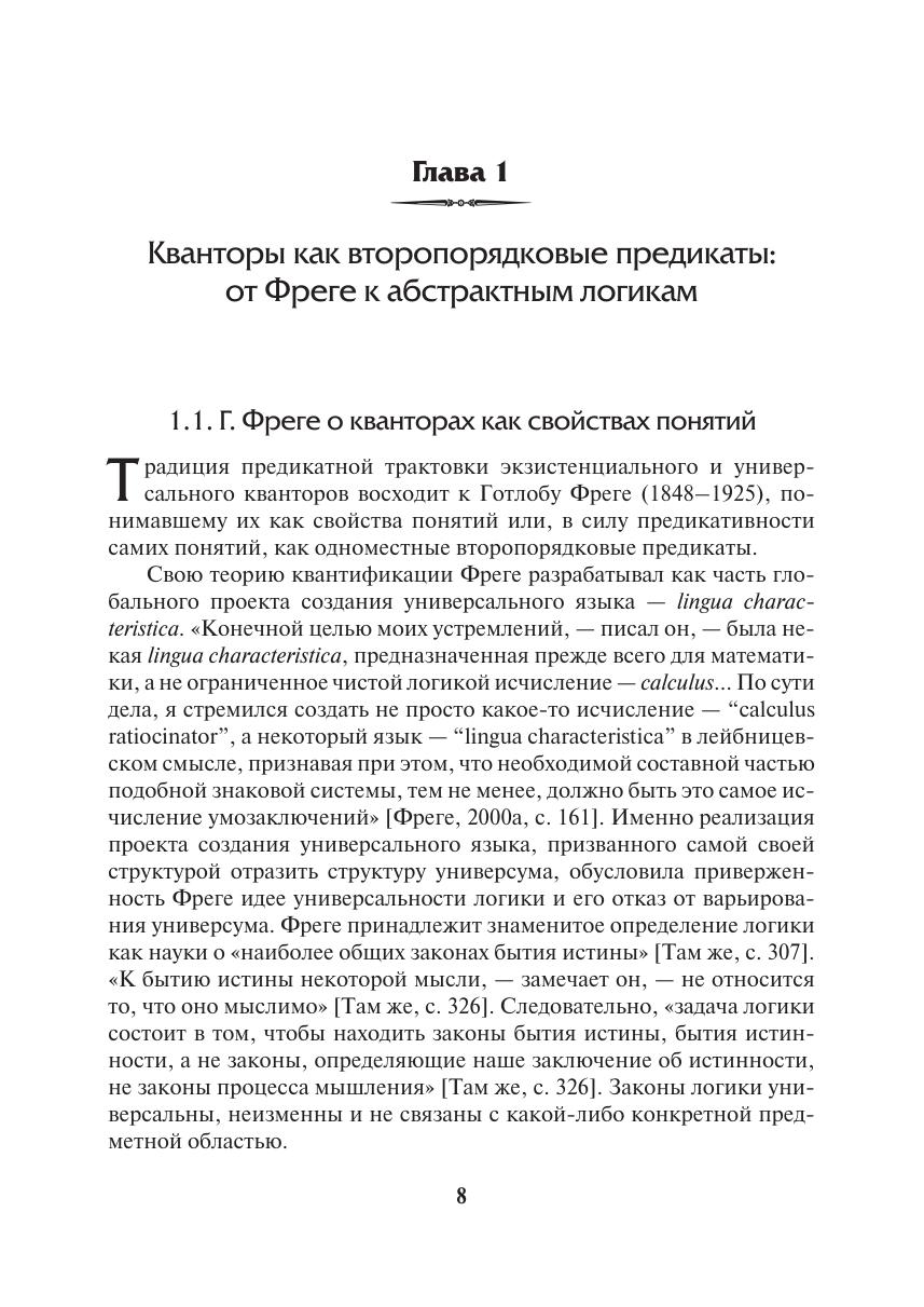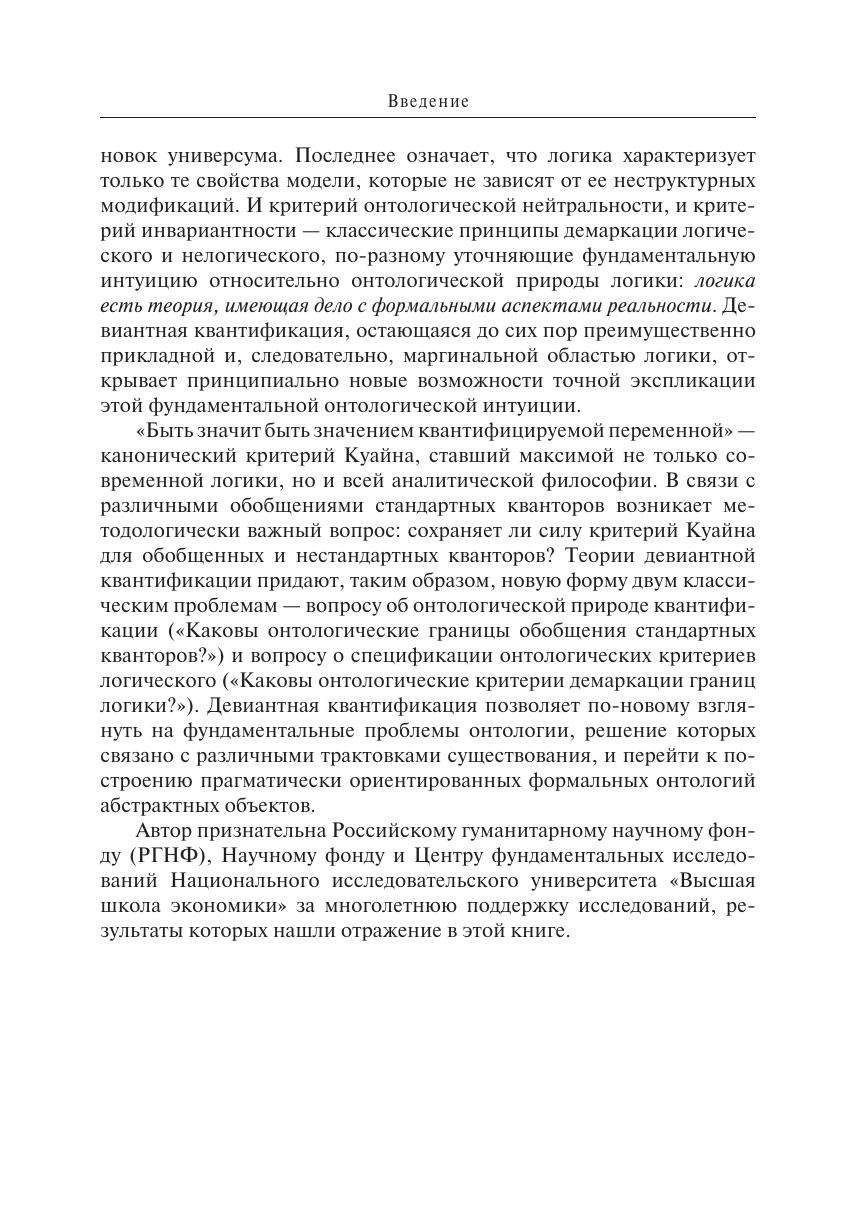 Монография посвящена онтологии стандартной и девиантной квантификации. В работе сопоставляются эвристические возможности и онтологические обязательства двух парадигм интерпретации кванторов: как второпорядковых предикатов и как функций выбора от их истоков (Г. Фреге и Ч.С. Пирс) до современного состояния (абстрактные логики и IF-логика). Новизна исследования связана с философской оценкой технических результатов последних лет о выразительных и дедуктивных возможностях логик с нестандартной квантификацией. Монография включает апробацию разработанных методов в логическом анализе языка, а также в логико-онтологиче ской экспликации классических философских затруднений, обусловленных предикативной трактовкой существования. Книга предназначена для специалистов в области логики, философии, когнитивной лингвистики и психологии, онтологической инженерии, а также для всех тех, кто интересуется историей и современным состоянием логики, аналитической философии и феноменологии, философскими основаниями математики и компьютерных наук.