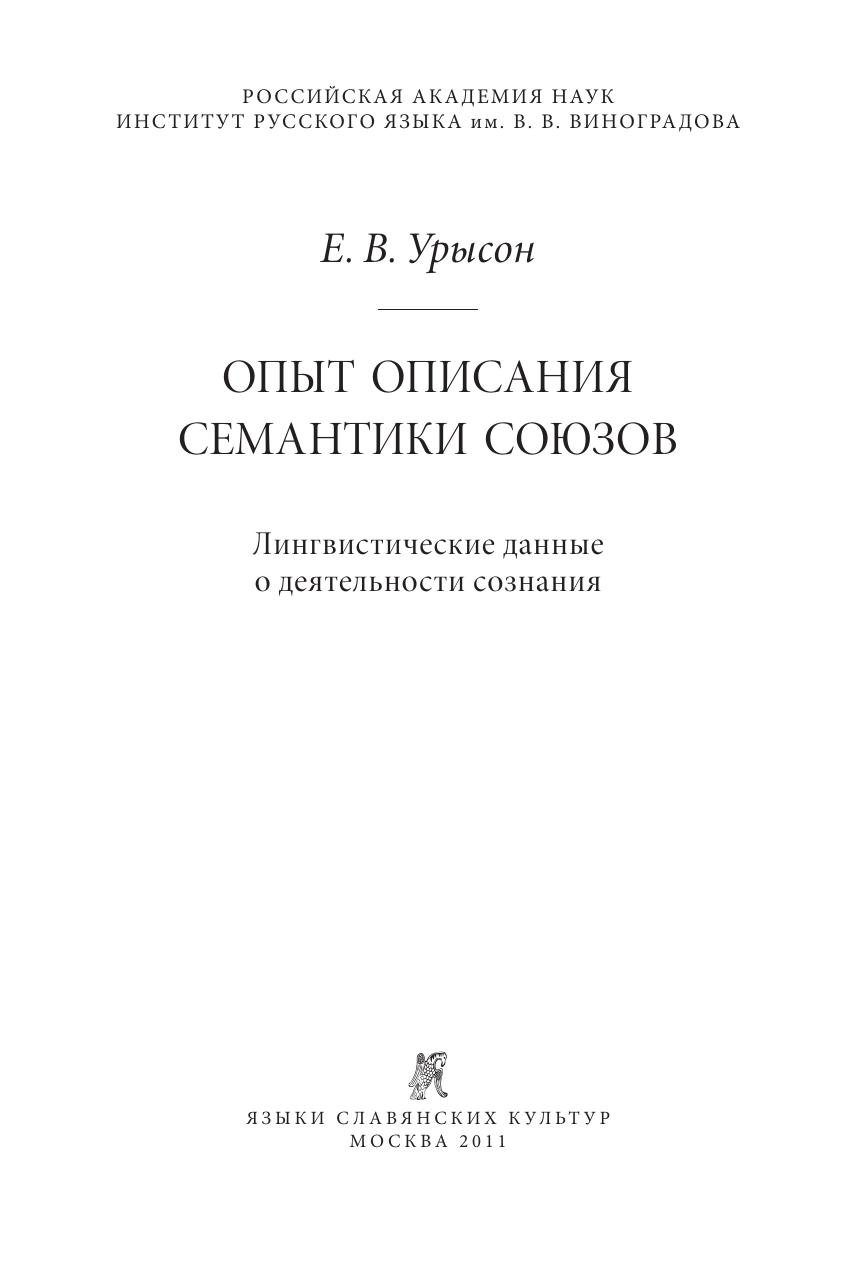 Опыт описания семантики союзов: Лингвистические данные о деятельности сознания