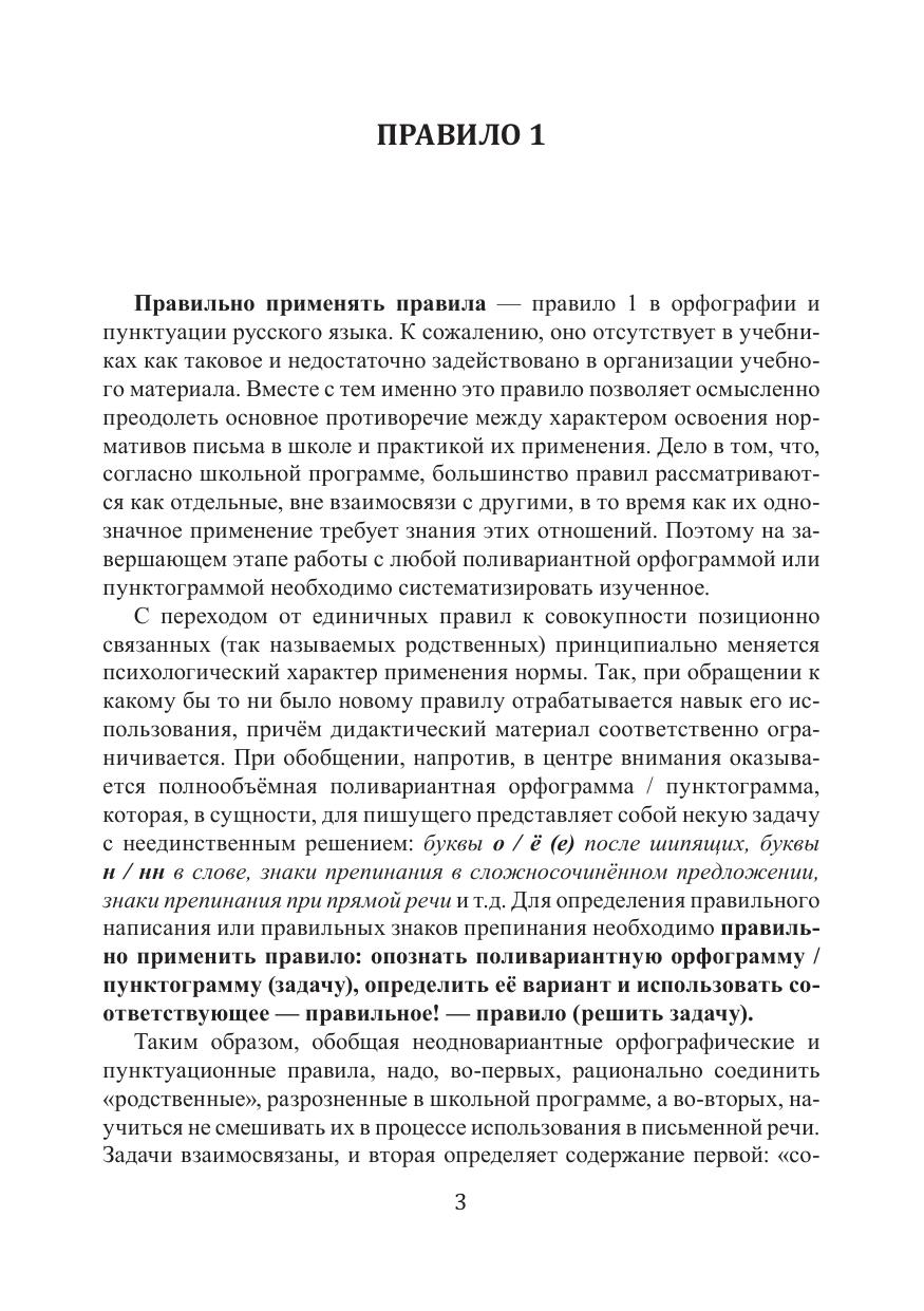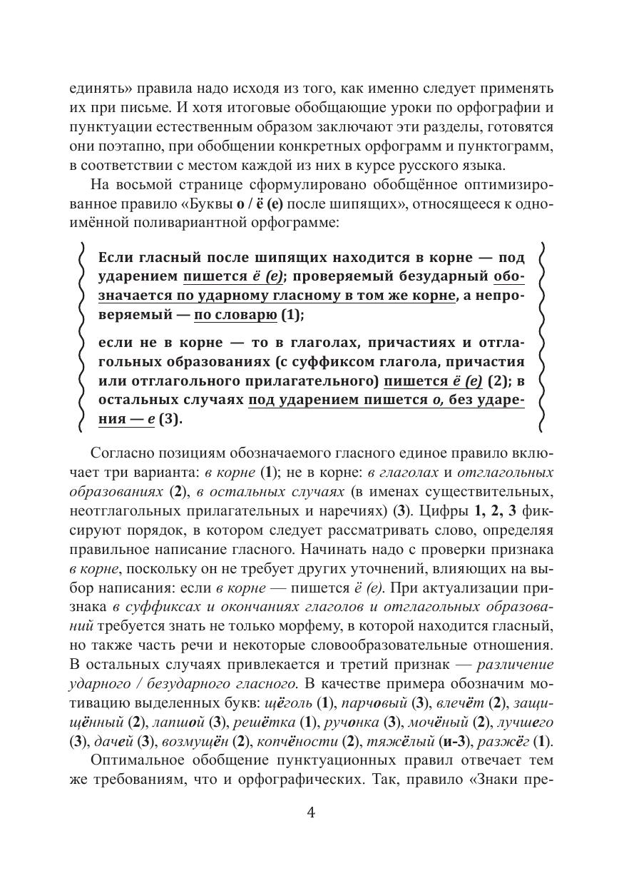 Обобщение орфографии и пунктуации основано на системной оптимизации правил: каждое охватывает норматив в полном объёме (слитное / раздельное написание не, знаки препинания при конструкции с как и другие); в структуре правила обозначен наиболее рациональный порядок его использования, т.е. алгоритм. Разработанный способ применения правил мотивирован их собственными системными отношениями и в силу этого наиболее эффективен. Курс носит