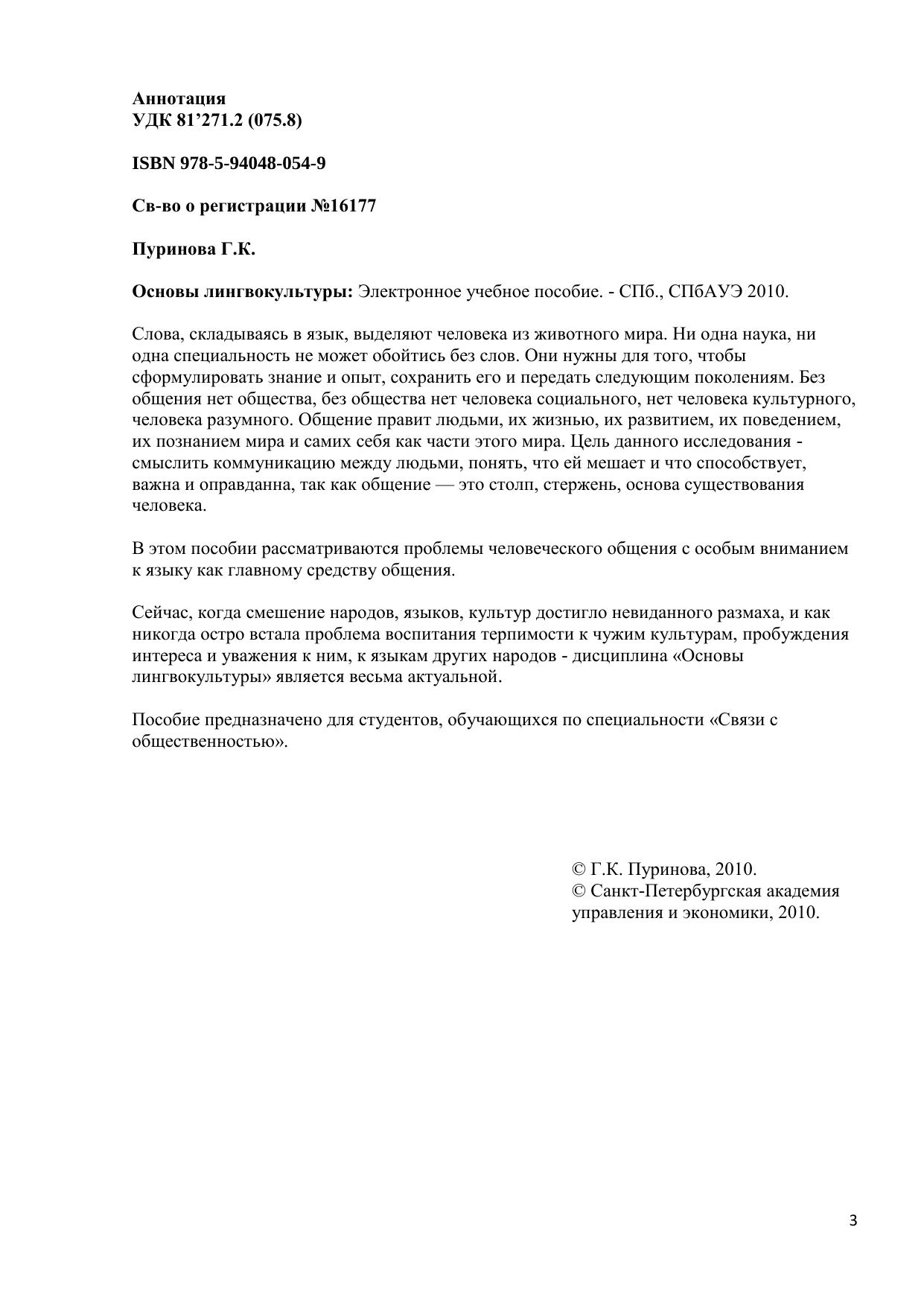 Слова, складываясь в язык, выделяют человека из животного мира. Ни одна наука, ни одна специальность не может обойтись без слов. Они нужны для того, чтобы сформулировать знание и опыт, сохранить его и передать следующим поколениям. Без общения нет общества, без общества нет человека социального, нет человека культурного, человека разумного. Общение правит людьми, их жизнью, их развитием, их поведением, их познанием мира и самих себя как части этого мира. Цель данного исследования - смыслить коммуникацию между людьми, понять, что ей мешает и что способствует, важна и оправданна, так как общение — это столп, стержень, основа существования человека. В этом пособии рассматриваются проблемы человеческого общения с особым вниманием к языку как главному средству общения. Электронное учебное пособие для дистанционного обучения
