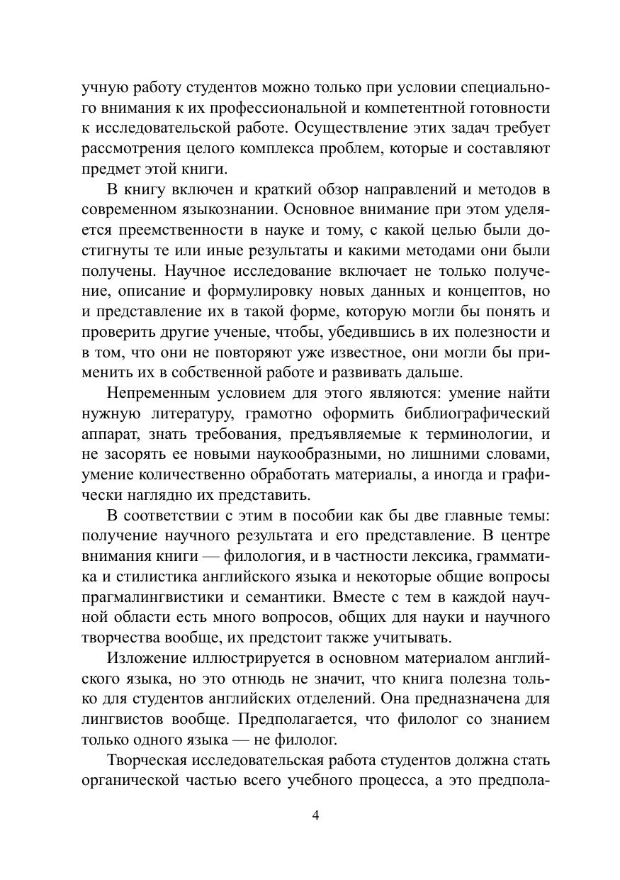 Цель пособия — ознакомить студентов с основами и процедурами современных лингвистических исследований, развить у них навыки самостоятельной творческой работы. В пособии рассматриваются методические, методологические и коммуникативные проблемы лингвистических исследований. Пособие знакомит с требованиями к терминологии, библиографическому аппарату, сбору и описанию фактического материала.