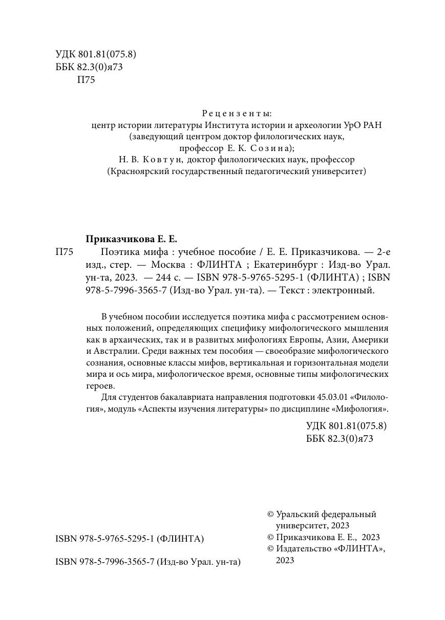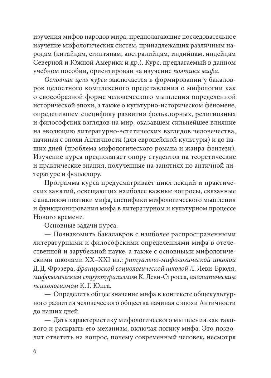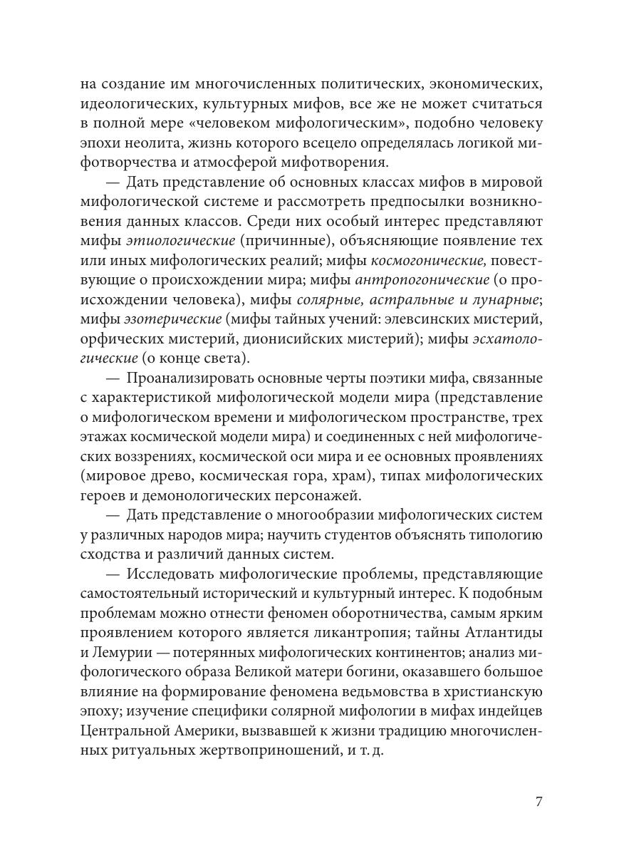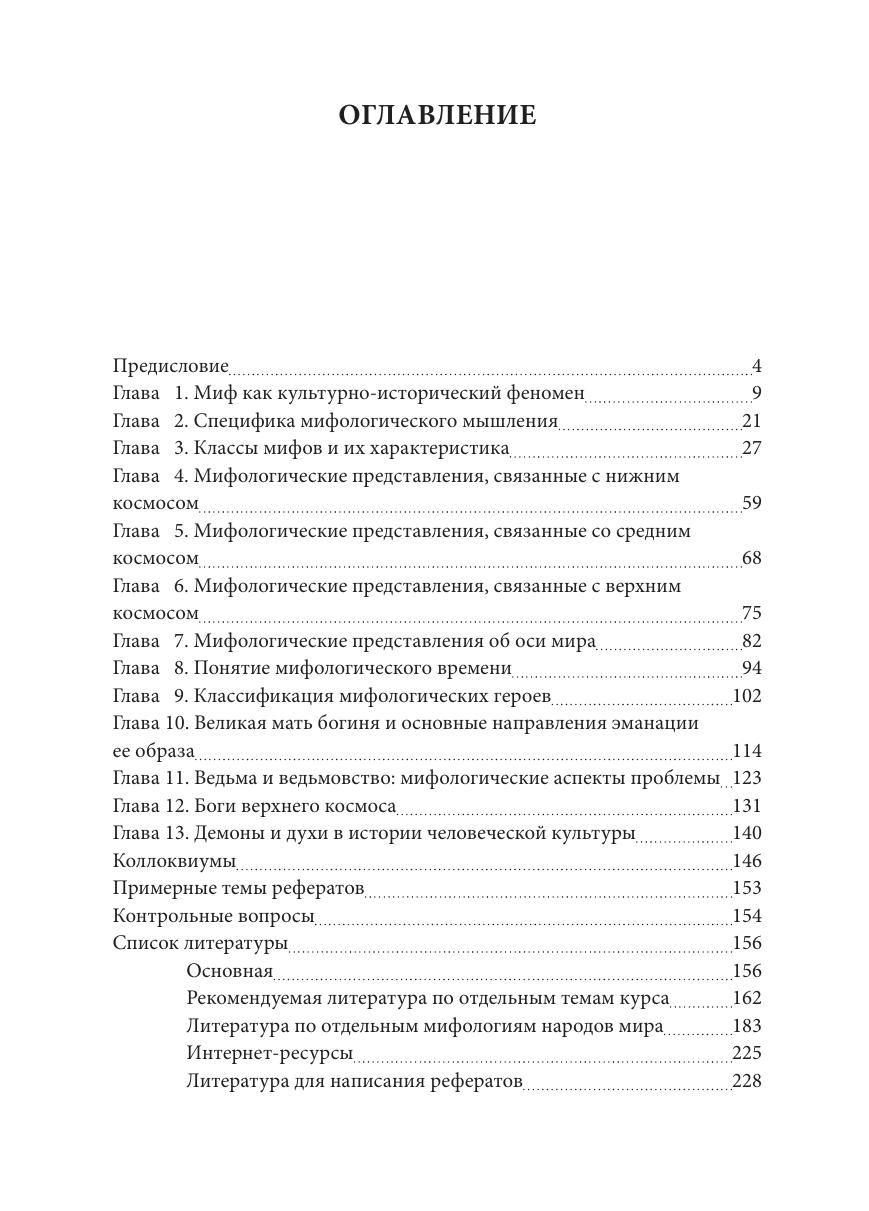В учебном пособии исследуется поэтика мифа с рассмотрением основных положений, определяющих специфику мифологического мышления как в архаических, так и в развитых мифологиях Европы, Азии, Америки и Австралии. Среди важных тем пособия — своеобразие мифологического сознания, основные классы мифов, вертикальная и горизонтальная модели мира и ось мира, мифологическое время, основные типы мифологических героев.