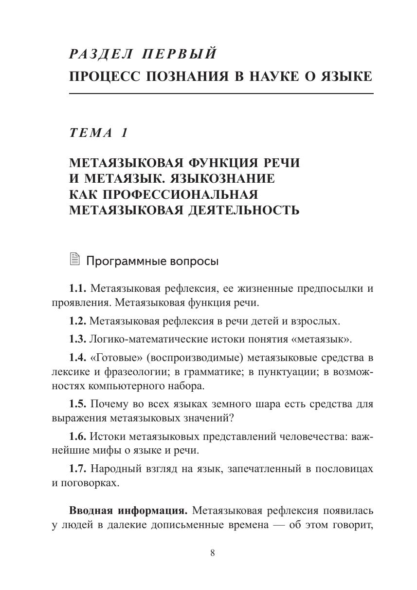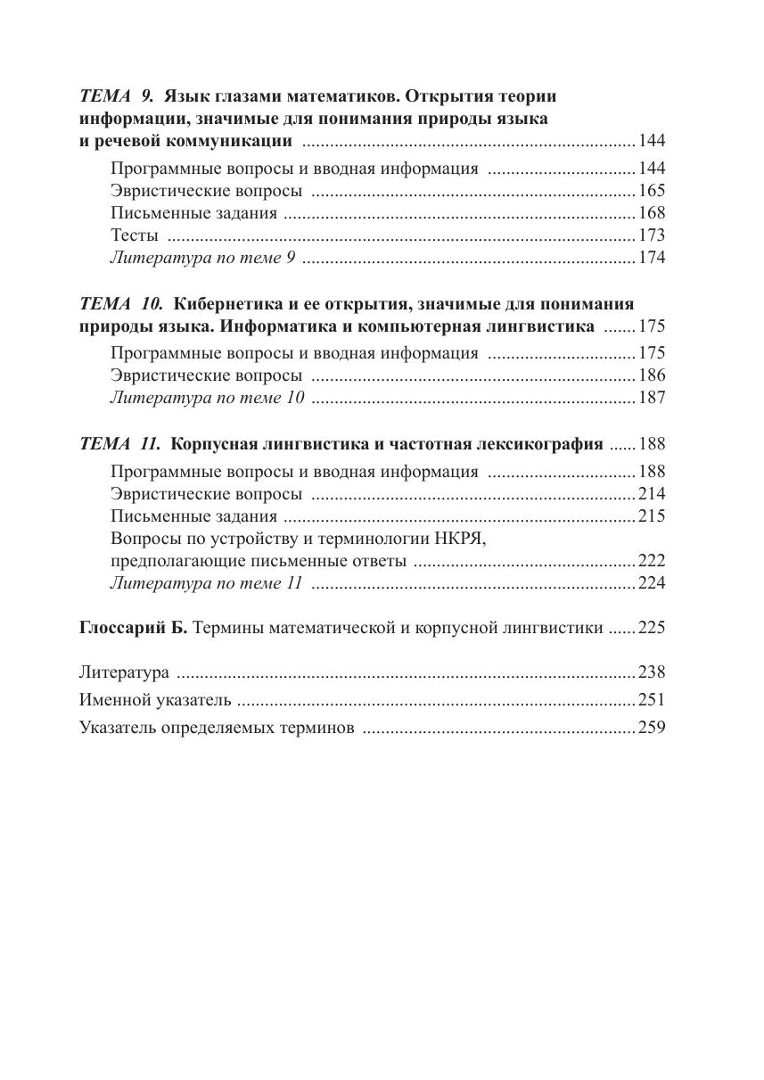 Книга состоит из двух разделов — «Процесс познания в науке о языке» и «Математические идеи и информационные технологии в лингвистике», которые в совокупности охватывают 11 широких тем по логике и методологии языкознания и по интернет-