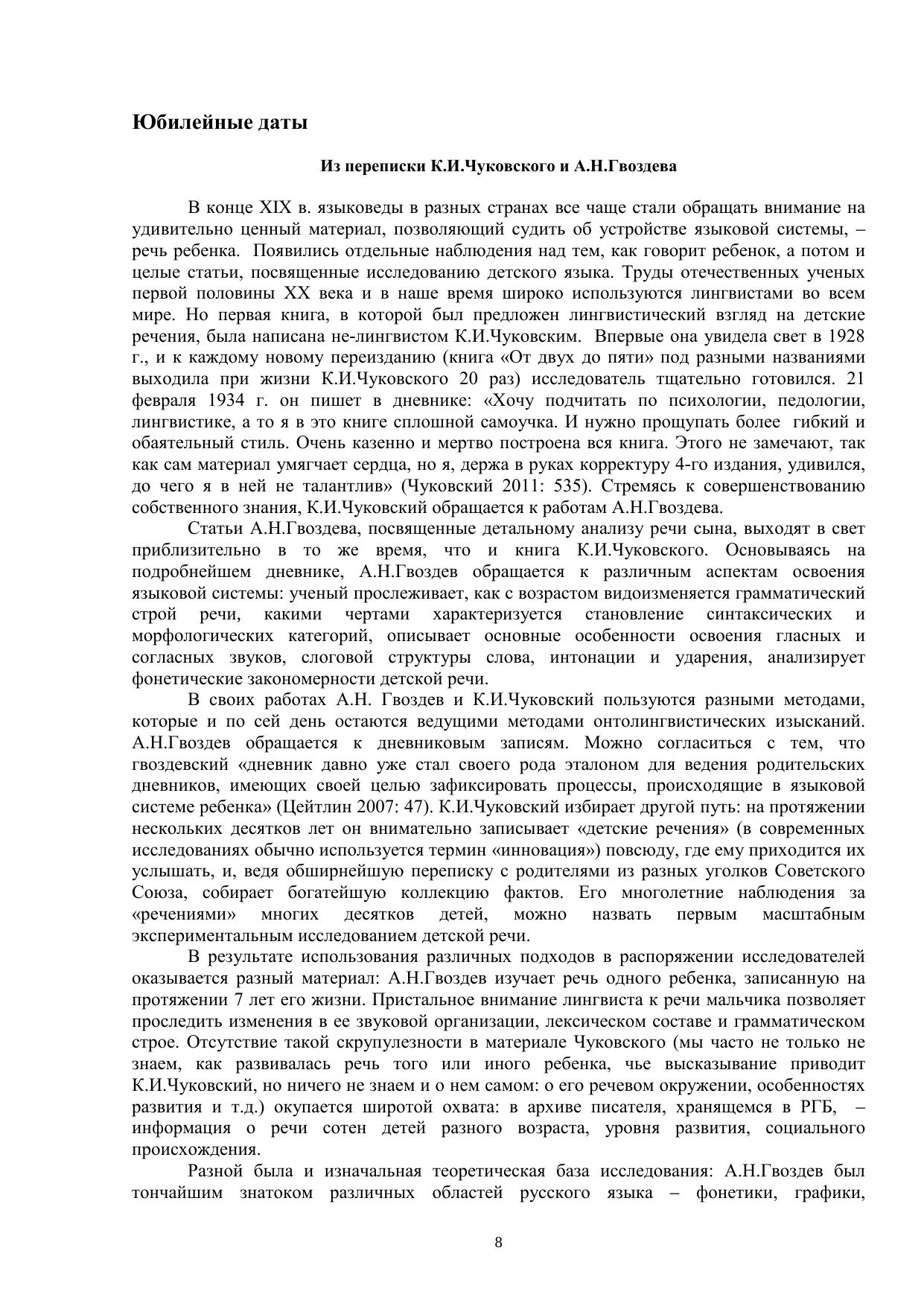 Материалы международной научной конференции, посвященной 130-летию со дня рождения К.И. Чуковского и 120-летию со дня рождения А.Н. Гвоздева (24–26 апреля 2012 г., Санкт-Петербург). В сборник вошли материалы конференции, посвященной двум юбилейным датам — 120-летию со дня рождения А.Н. Гвоздева и 130-летию со дня рождения К.И. Чуковского. В докладах участников конференции прослеживаются основные направления современных онтолингвистических исследований, заложенные этими исследователями: становление грамматики, освоение словарного состава языка, овладение письменной формой речи, сопоставляется речевое развитие детей с нормальным и отклоняющимся речевым развитием, анализируются ошибки детей, осваивающих русский язык как первый и как второй.Книга адресована лингвистам, психологам, логопедам, методистам по развитию речи.