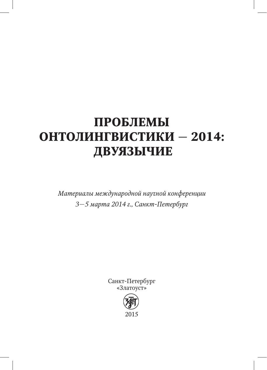 Проблемы онтолингвистики — 2014: двуязычие