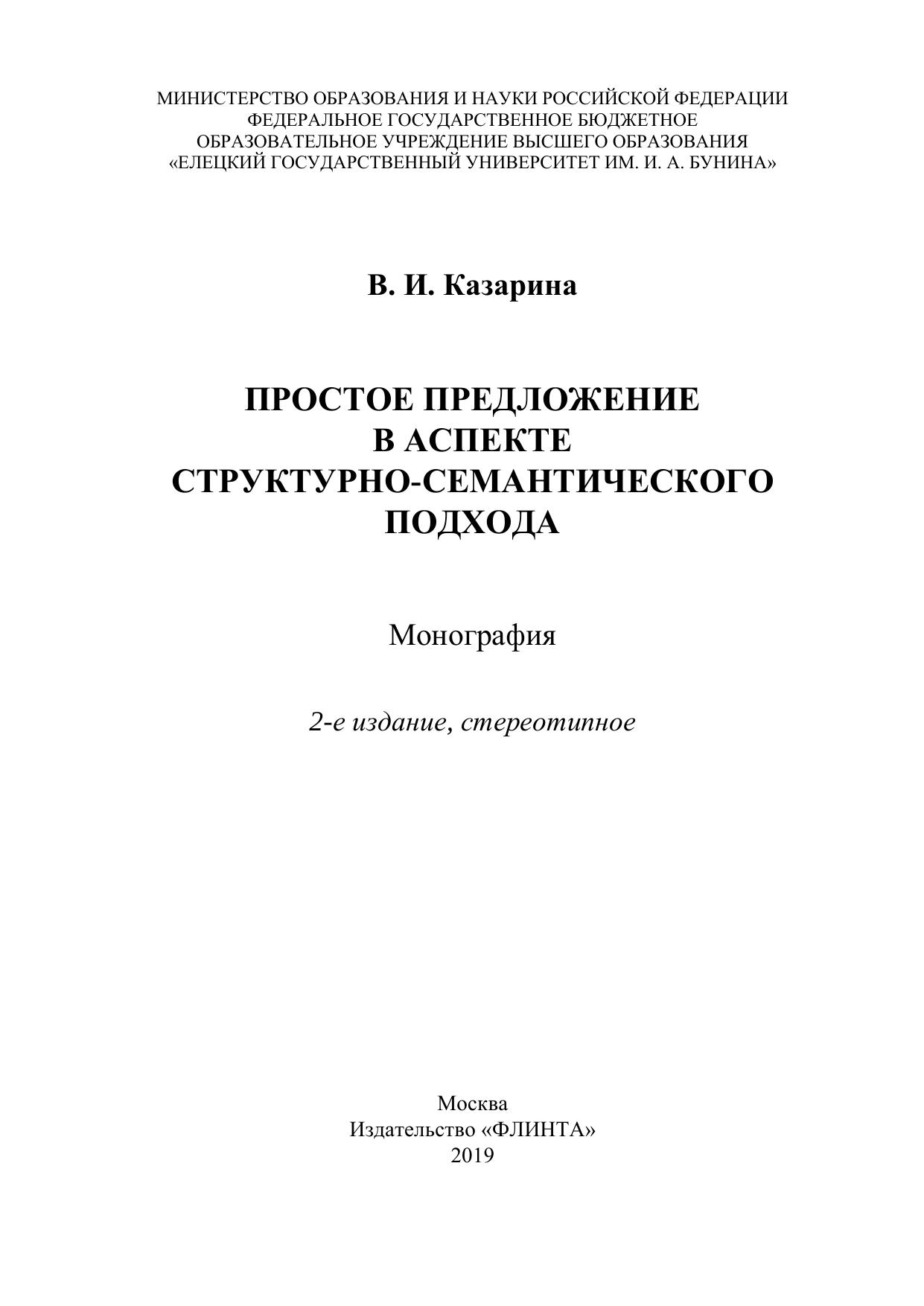 Простое предложение в аспекте структурно-семантического подхода: монография