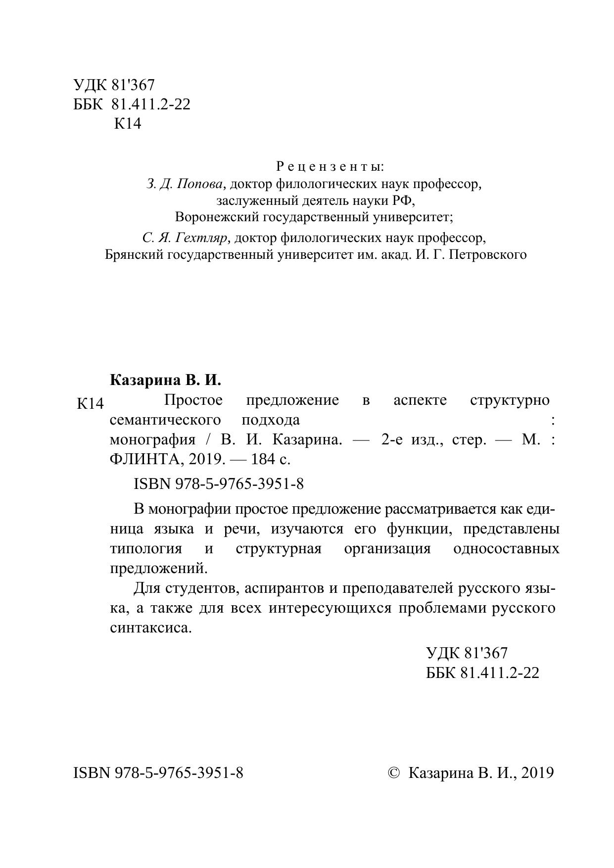 В монографии простое предложение рассматривается как единица языка и речи, изучаются его функции, представлены типология и структурная организация односоставных предложений.