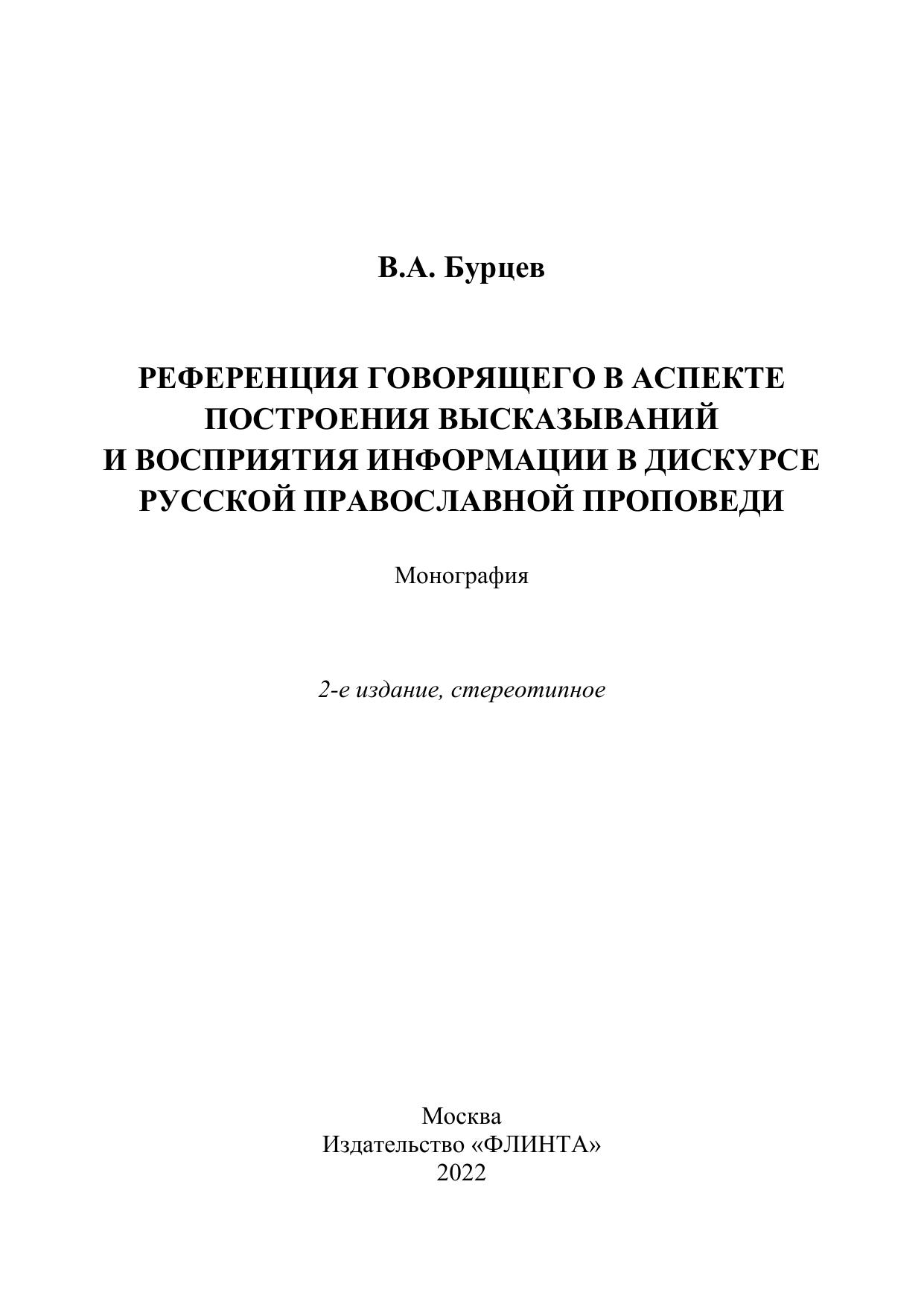 Референция говорящего в аспекте построения высказываний и восприятия информации в дискурсе русской православной проповеди