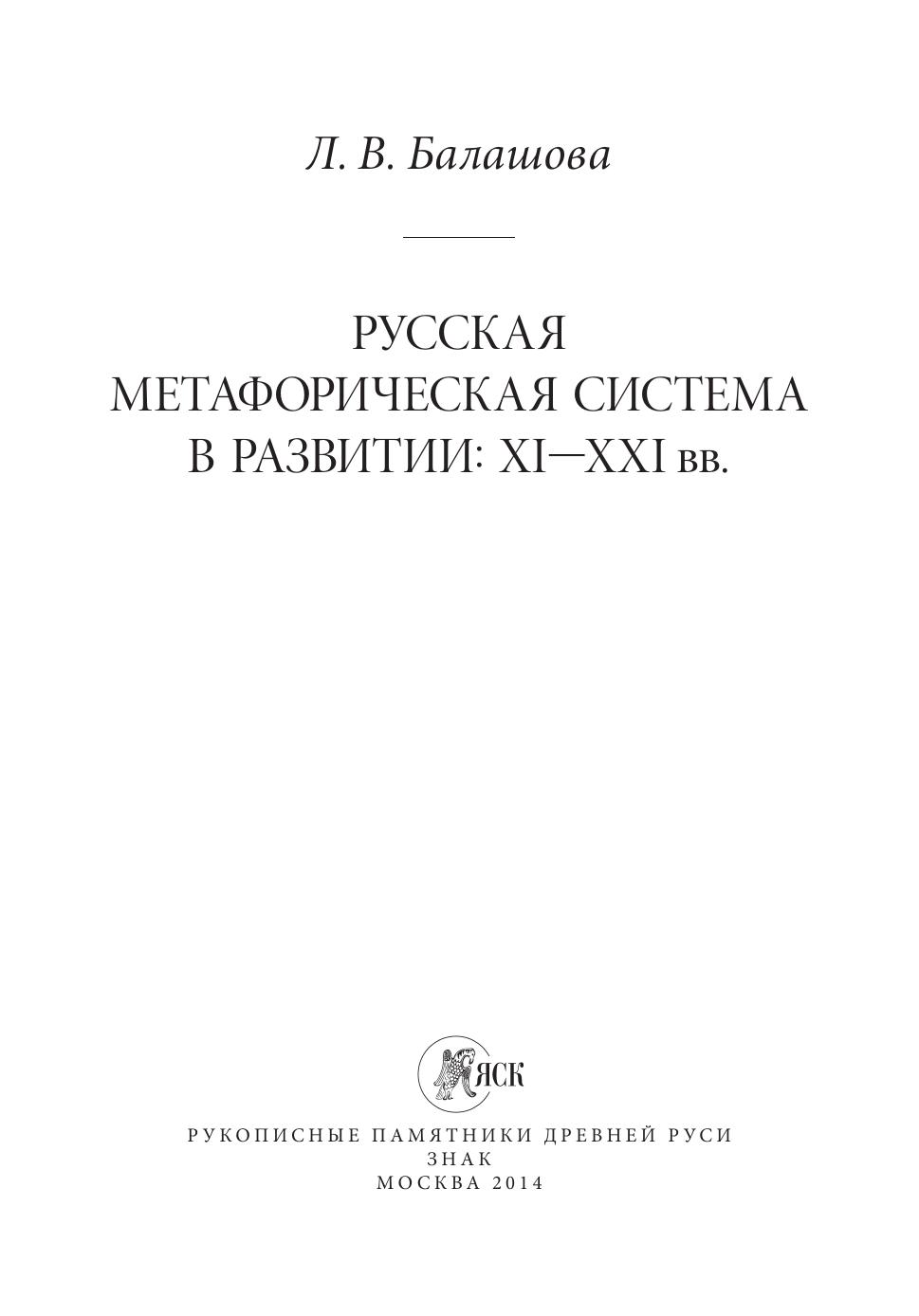 Русская метафорическая система в развитии: XI-XXI вв.