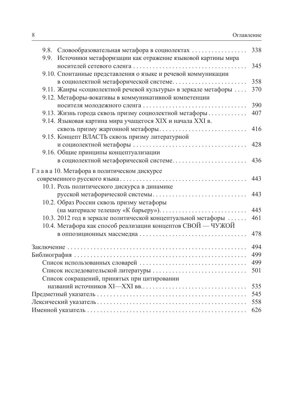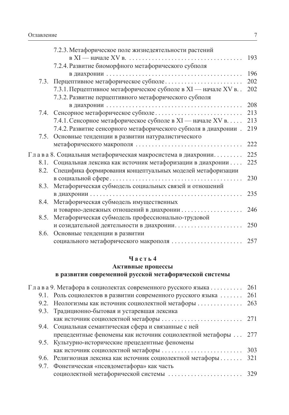 В книге рассмотрены актуальные проблемы теории метафоры в когнитивном и диахроническом аспекте. На большом фактическом материале (несколько десятков тысяч лексических единиц) проанализировано становление и развитие метафорической системы русского языка с конца X по начало XXI в. Выявлены наиболее регулярные концептуальные модели метафоризации в предметной и непредметной лексических сферах, обсуждаются стабильность и динамика данных моделей в истории русского языка и факторы, влияющие на их развитие. Особое внимание уделено роли процесса метафоризации в формировании и развитии языковой картины мира носителей русского языка в разные периоды его функционирования. Результаты исследования могут быть использованы в исторической лексикологии и исторической лексикографии русского языка, в частности, при составлении исторических словарей. Для лингвистов, культурологов, студентов и преподавателей, для всех, кого интересуют язык и культура в их исторической перспективе.