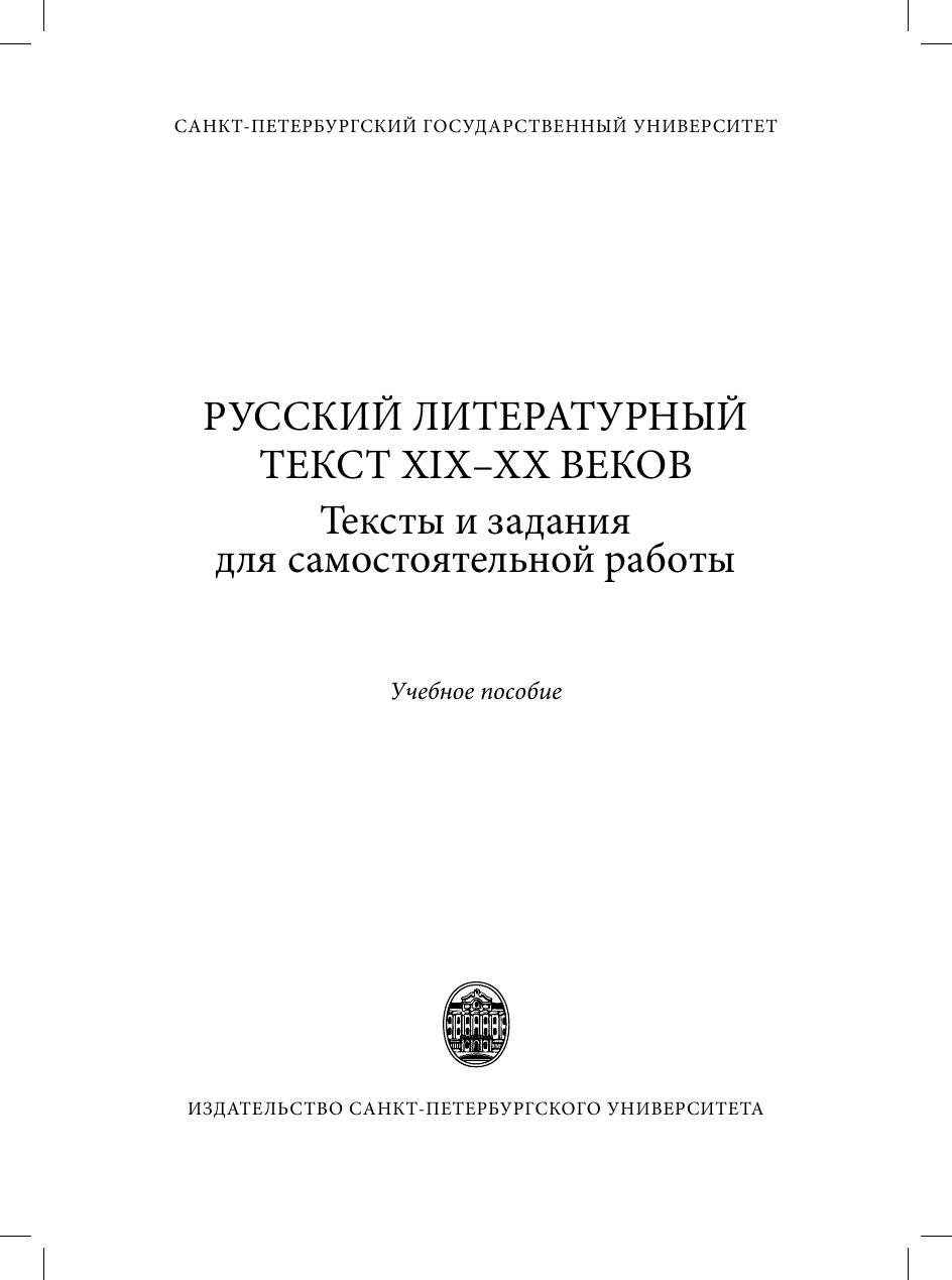 Русский литературный текст XIX–XX веков. Тексты и задания для самостоятельной работы