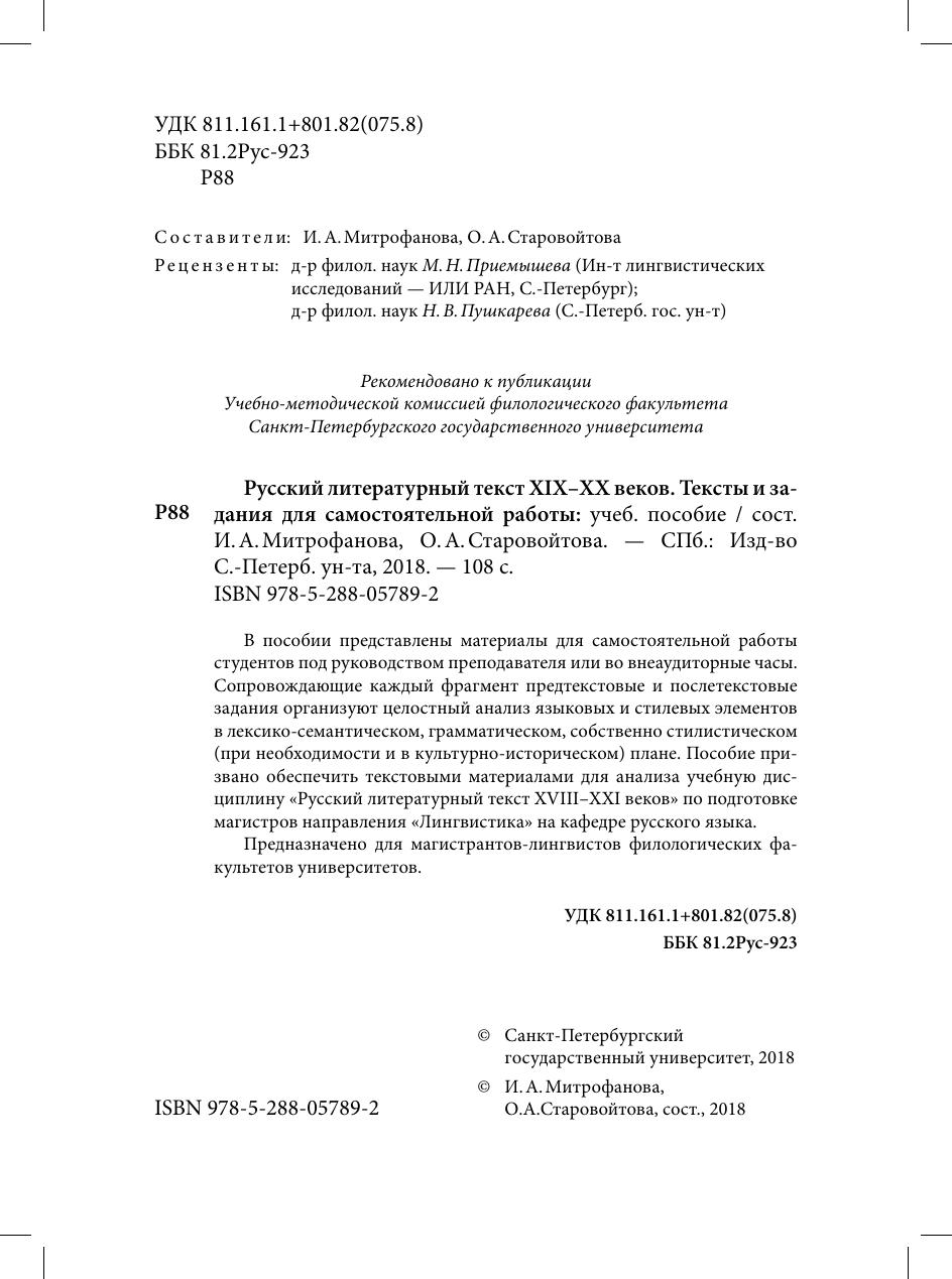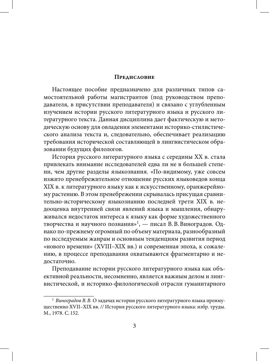В пособии представлены материалы для самостоятельной работы студентов под руководством преподавателя или во внеаудиторные часы. Сопровождающие каждый фрагмент предтекстовые и послетекстовые задания организуют целостный анализ языковых и стилевых элементов в лексико-семантическом, грамматическом, собственно стилистическом (при необходимости и в культурно-историческом) плане. Пособие призвано обеспечить текстовыми материалами для анализа учебную дисциплину «Русский литературный текст XVIII–XXI веков» по подготовке магистров направления «Лингвистика» на кафедре русского языка.