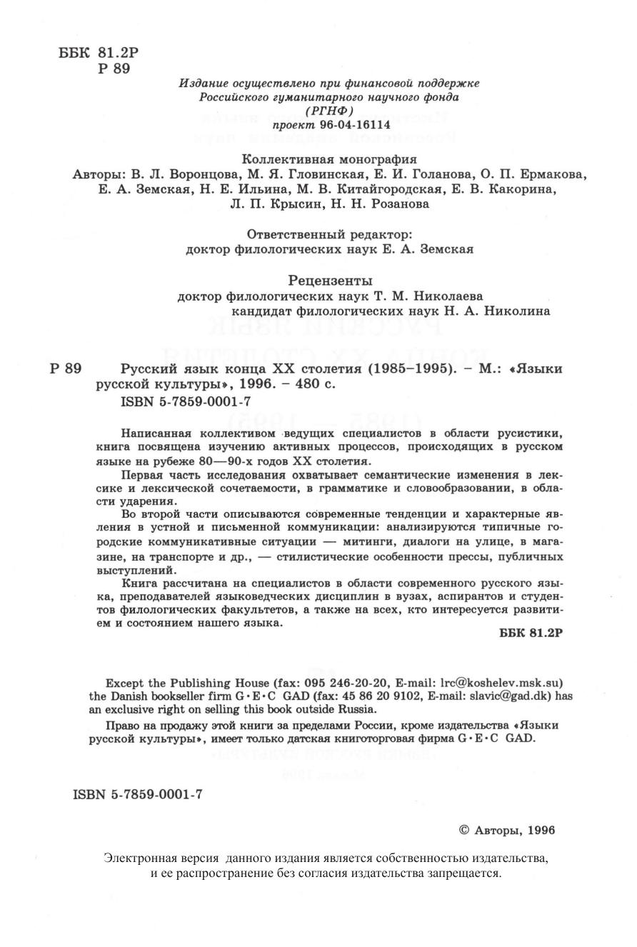 Авторы: Воронцова В. Л., Гловинская М. Я., Голанова Е. И., Ермакова О. П., Земская Е. А., Ильина Н. Е., Китайгородская М. В., Какорина Е. В., Крысин Л. П., Розанова Н. Н.