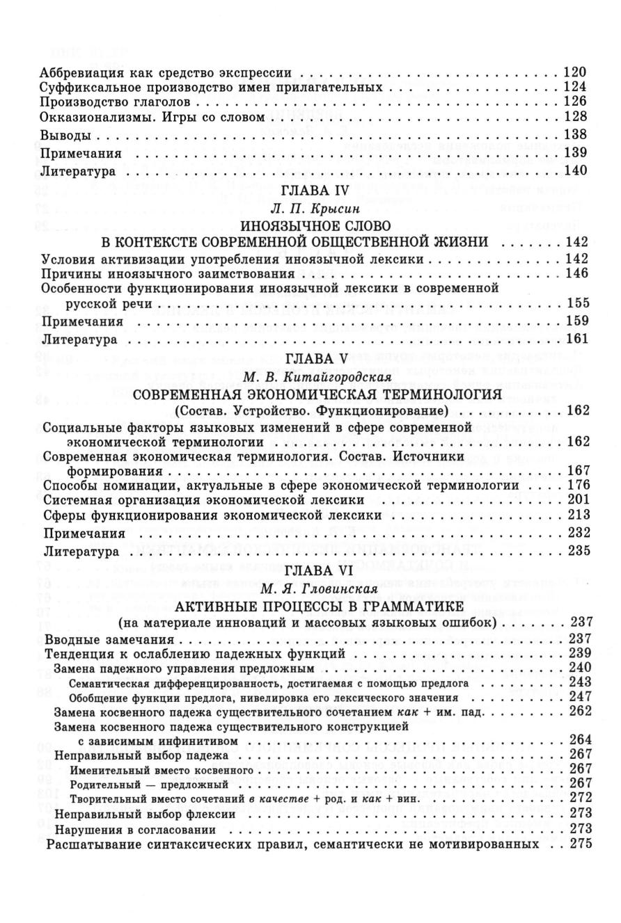 Написанная коллективом ведущих специалистов в области русистики, книга посвящена изучению активных процессов, происходящих в русском языке на рубеже 80—90-х годов XX столетия. Первая часть исследования охватывает семантические изменения в лексике и лексической сочетаемости, в грамматике и словообразовании, в области ударения. Во второй части описываются современные тенденции и характерные явления в устной и письменной коммуникации: анализируются типичные городские коммуникативные ситуации — митинги, диалоги на улице, в магазине, на транспорте и др., — стилистические особенности прессы, публичных выступлений. Книга рассчитана на специалистов в области современного русского языка, преподавателей языковедческих дисциплин в вузах, аспирантов и студентов филологических факультетов, а также на всех, кто интересуется развитием и состоянием нашего языка.