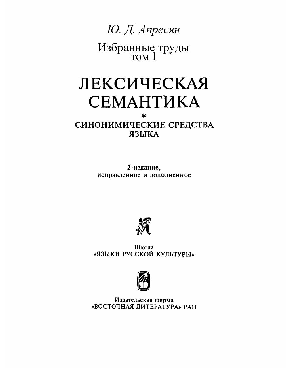 В монографии предлагаются элементы семантического языка для описания смысла слов естественного языка. На этой основе выполнено описание синонимических средств языка (словообразования, регулярной многозначности, синонимов, конверсивов, антонимов и т.п.) и сформулированы правила глубинно-синтаксических преобразований. Полученные результаты могут быть также использованы в работе по автоматическому синтезу текстов.