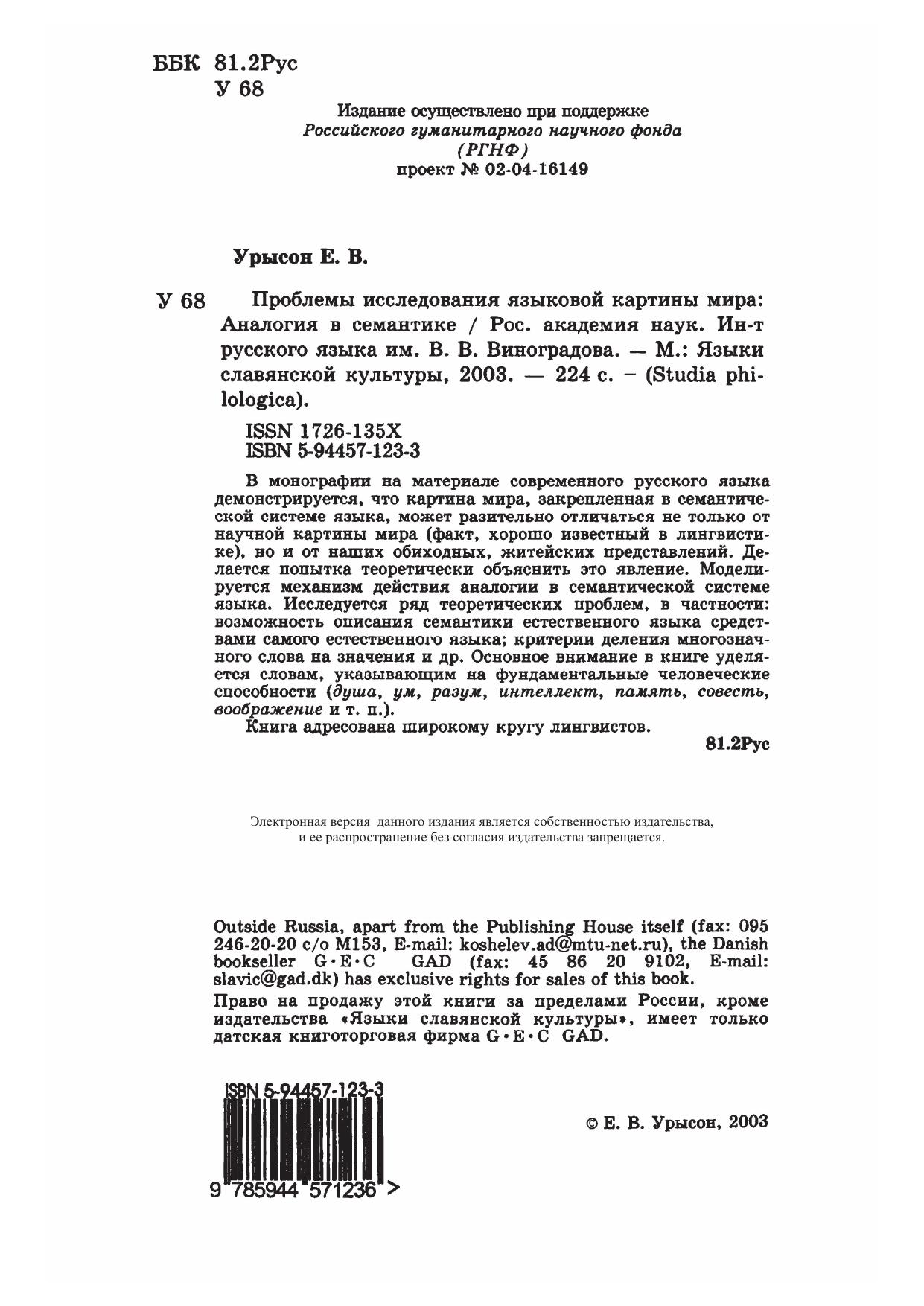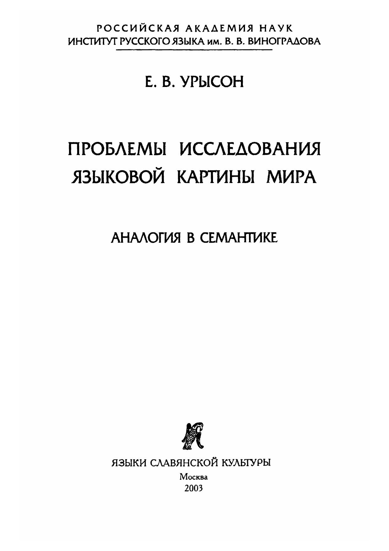 Проблемы исследования языковой картины мира: Аналогия в семантике