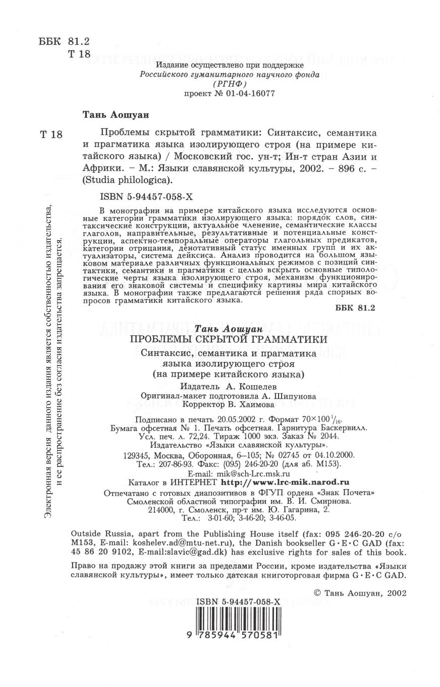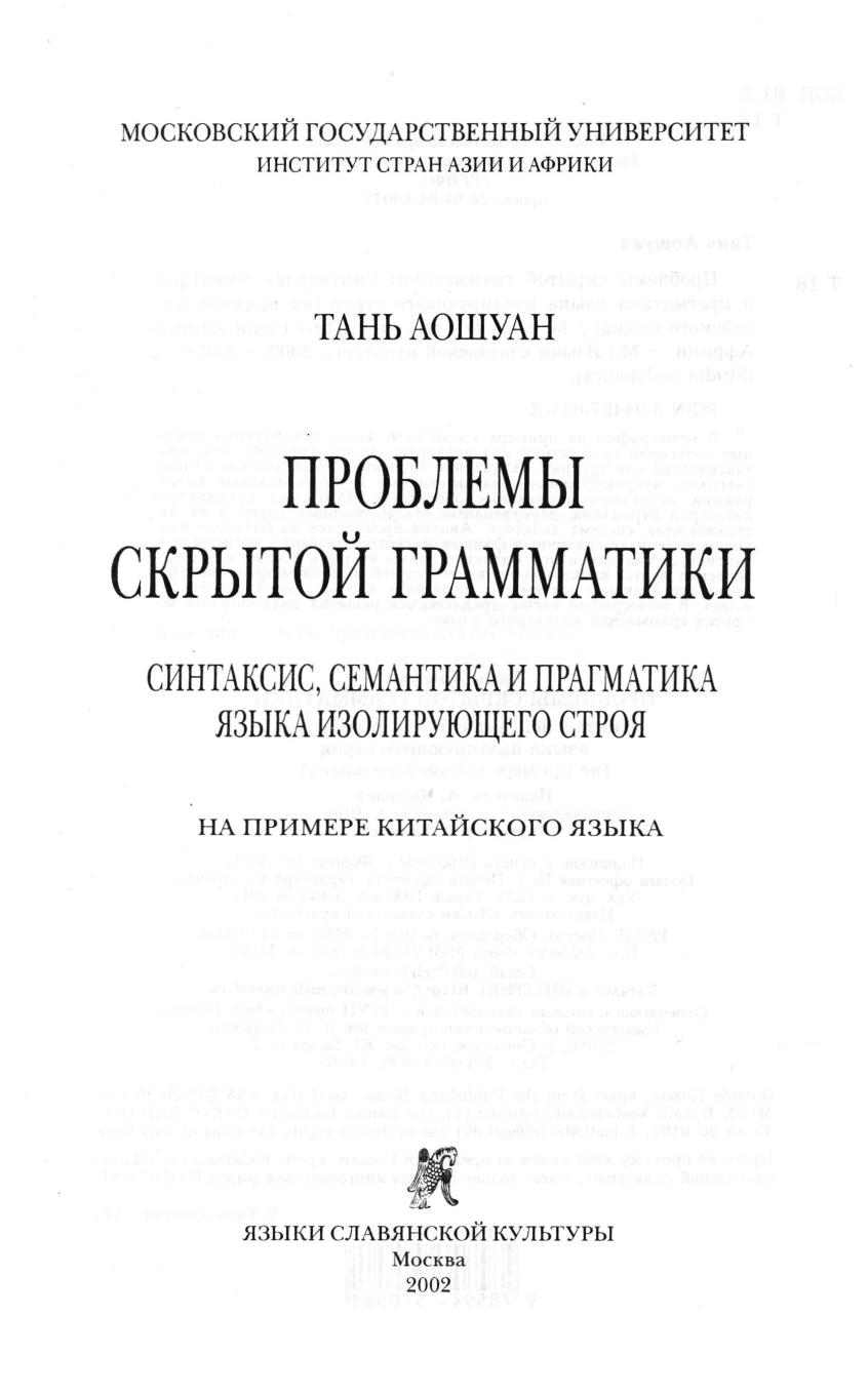 Проблемы скрытой грамматики: Синтаксис, семантика и прагматика языка изолирующего строя (на примере китайского языка)