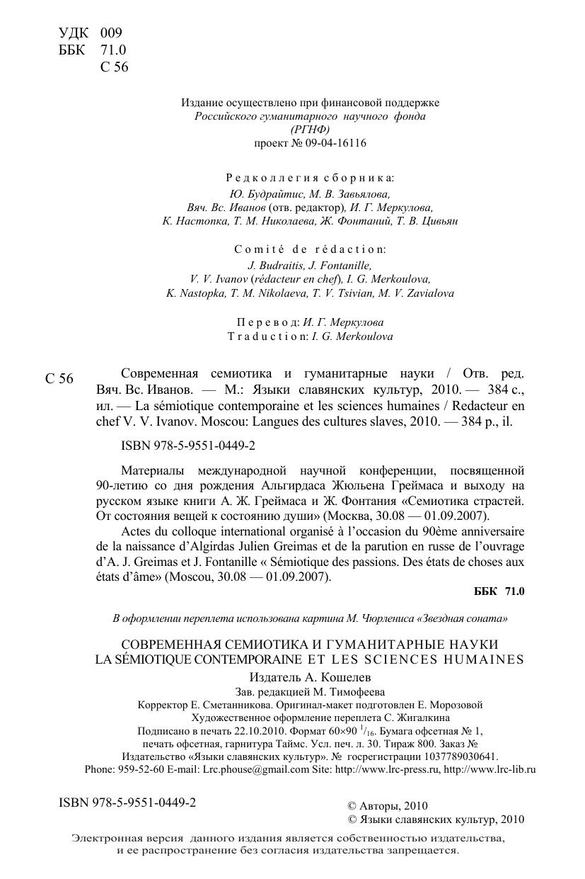 Материалы международной научной конференции, посвященной 90-летию со дня рождения Альгирдаса Жюльена Греймаса и выходу на русском языке книги А.Ж. Греймаса и Ж. Фонтания "Семиотика страстей. От состояния вещей к состоянию души" (Москва, 30.08 - 01.09.2007). Для научных работников, широкого круга специалистов.