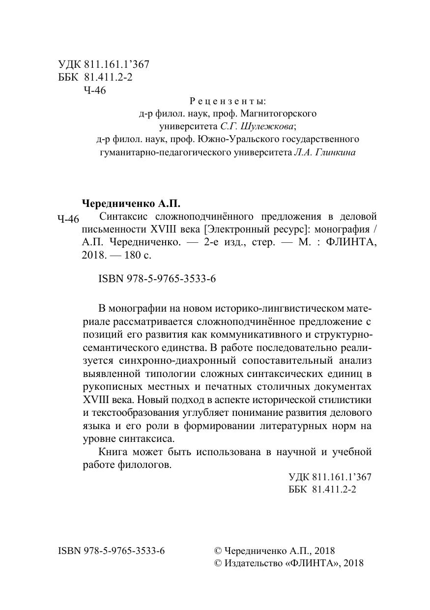 В монографии на новом историко-лингвистическом материале рассматривается сложноподчинённое предложение спозиций его развития как коммуникативного и структурно-семантического единства. В работе последовательно реализуется синхронно-диахронный сопоставительный анализ выявленной типологии сложных синтаксических единиц в рукописных местных и печатных столичных документах XVIII века. Новый подход в аспекте исторической стилистики и текстообразования углубляет понимание развития делового языка и его роли в формировании литературных норм на уровне синтаксиса. Книга может быть использована в научной и учебной работе филологов.