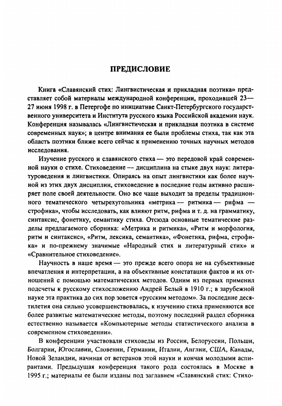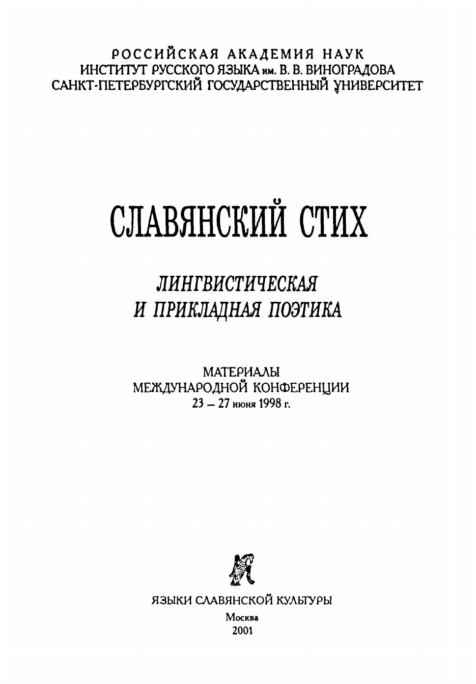 Славянский стих: Лингвистическая и прикладная поэтика. Материалы международной конференции 23-27 июня 1998 г.