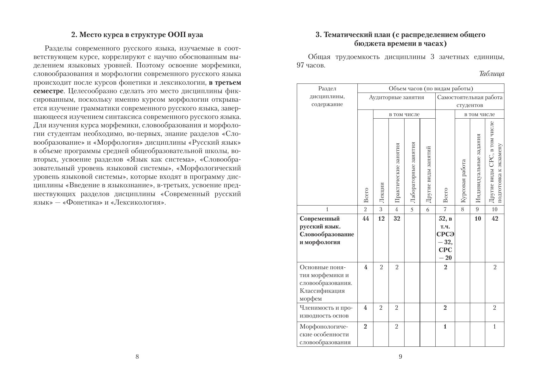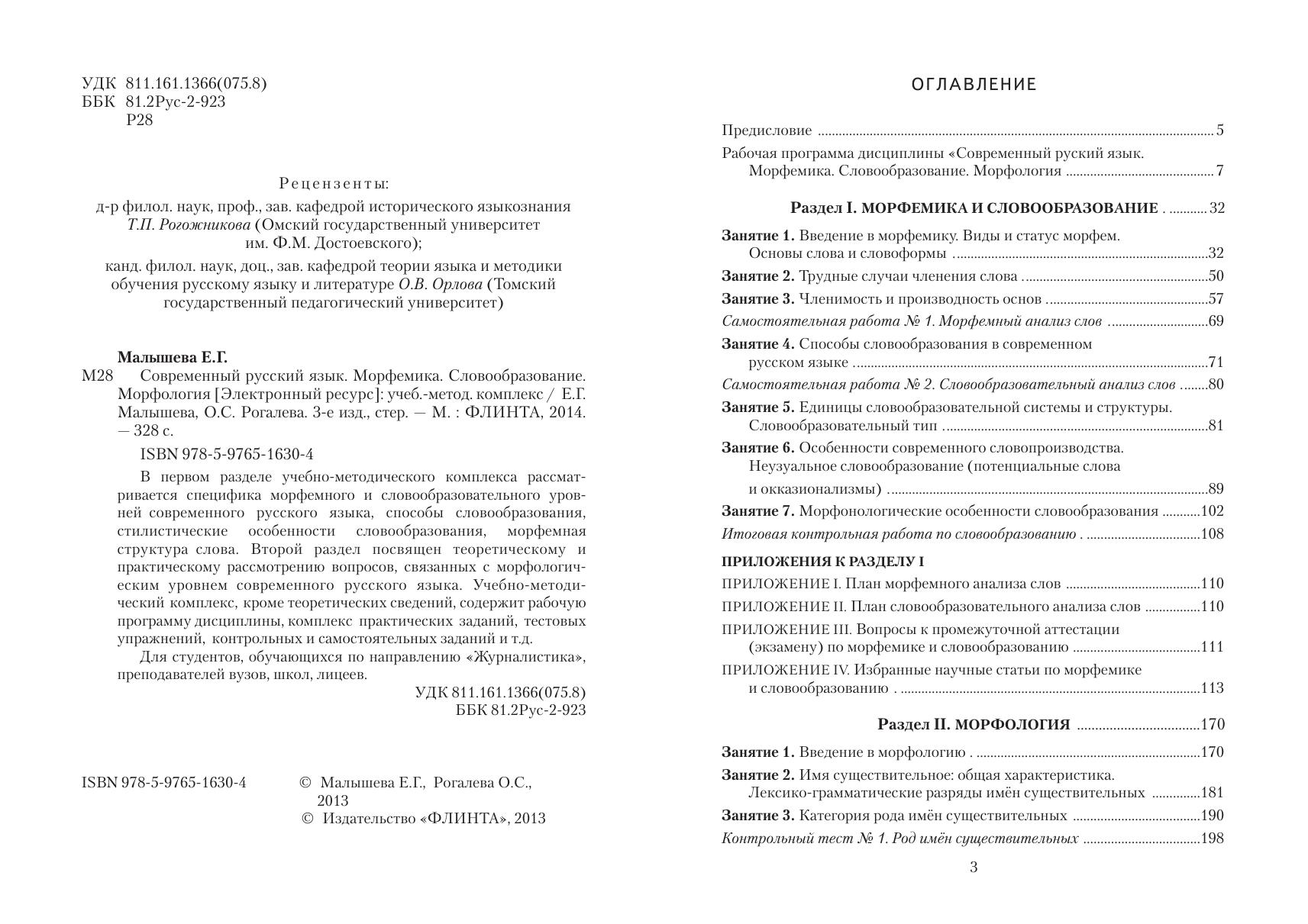 В первом разделе учебно-методического комплекса рассматривается специфика морфемного и словообразовательного уровней современного русского языка, способы словообразования, стилистические особенности словообразования, морфемная структура слова. Второй раздел посвящен теоретическому и