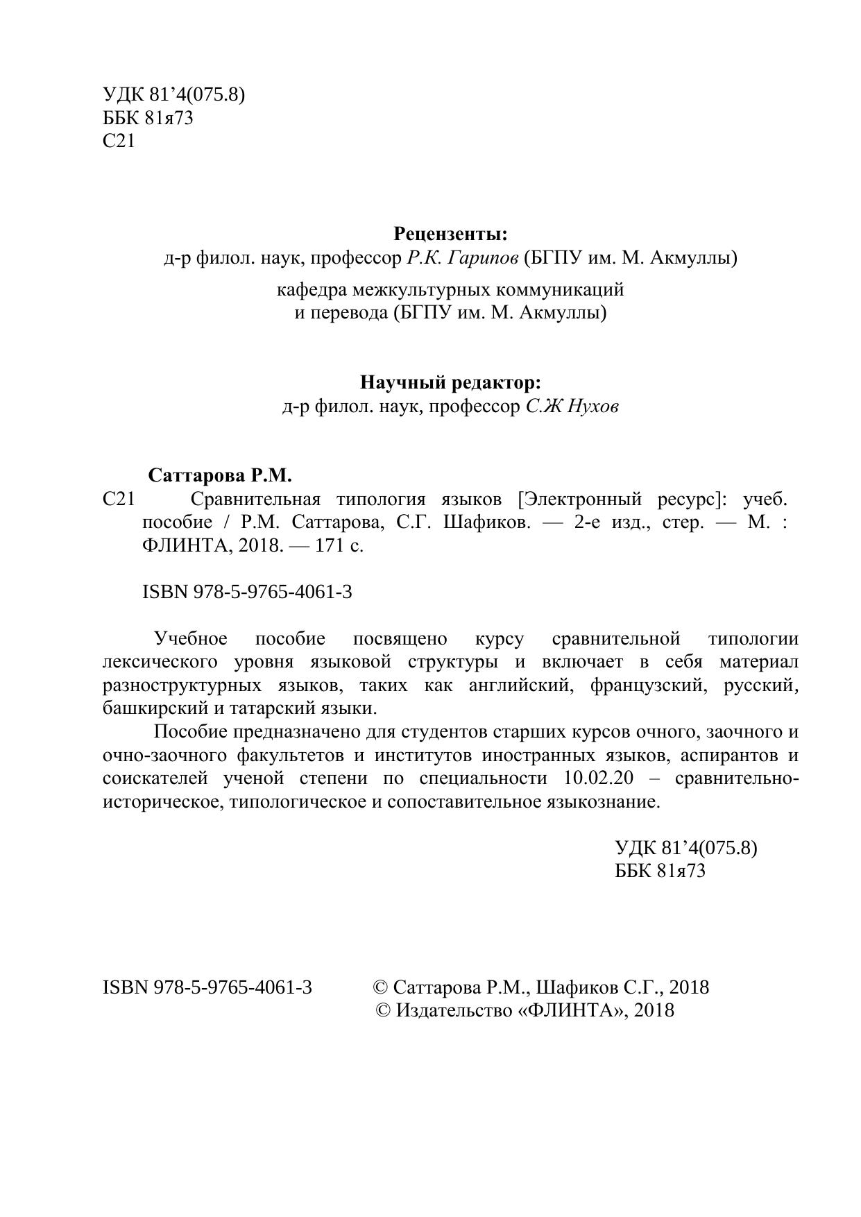 Пособие предназначено для студентов старших курсов очного, заочного и очно-заочного факультетов и институтов иностранных языков, аспирантов и соискателей ученой степени по специальности 10.02.20 – сравнительно-историческое, типологическое и сопоставительное языкознание.
