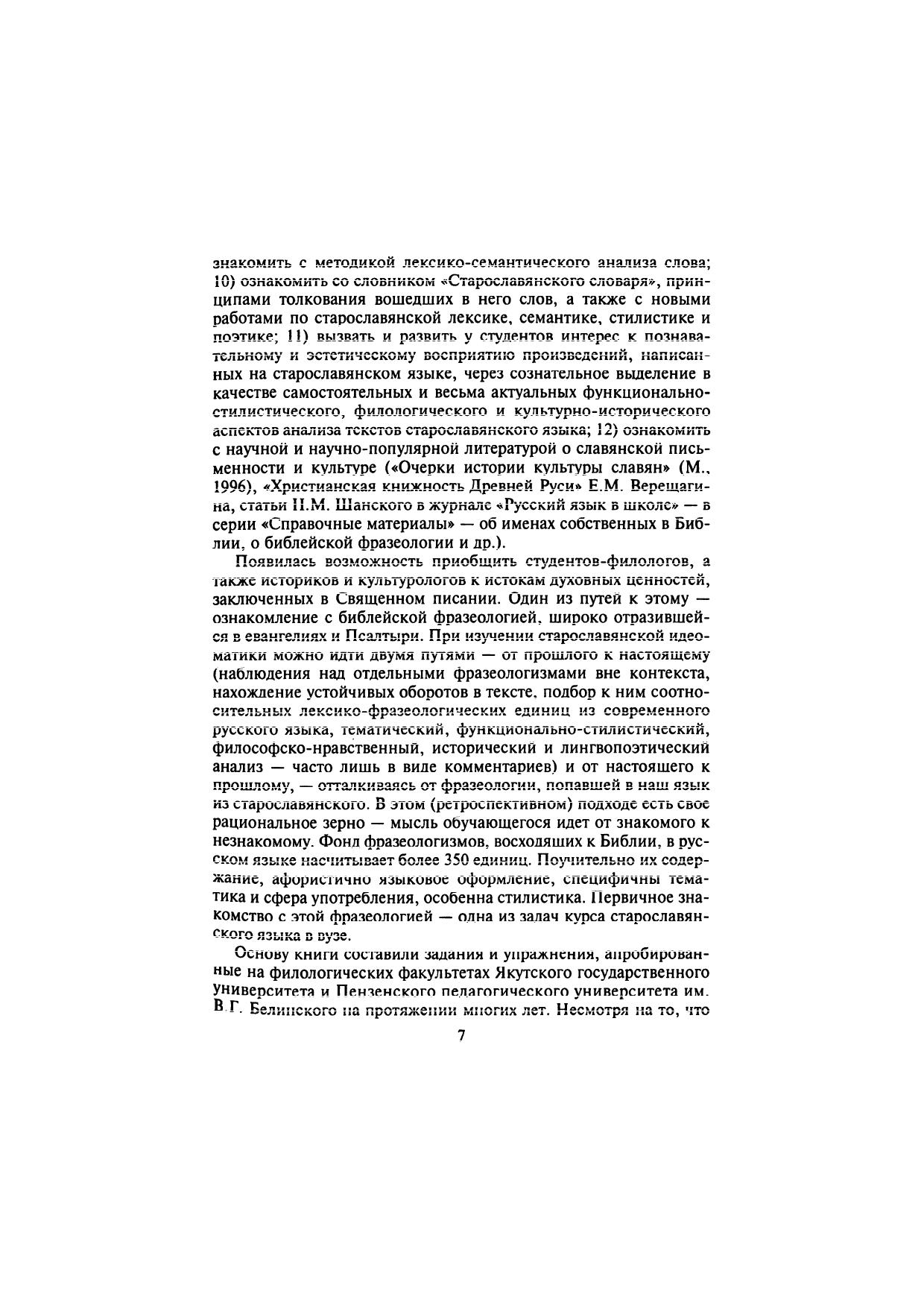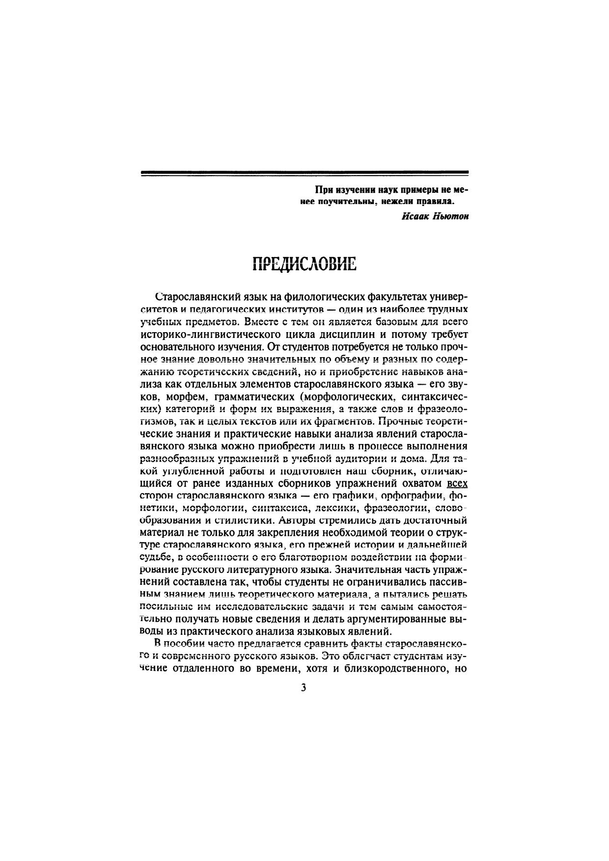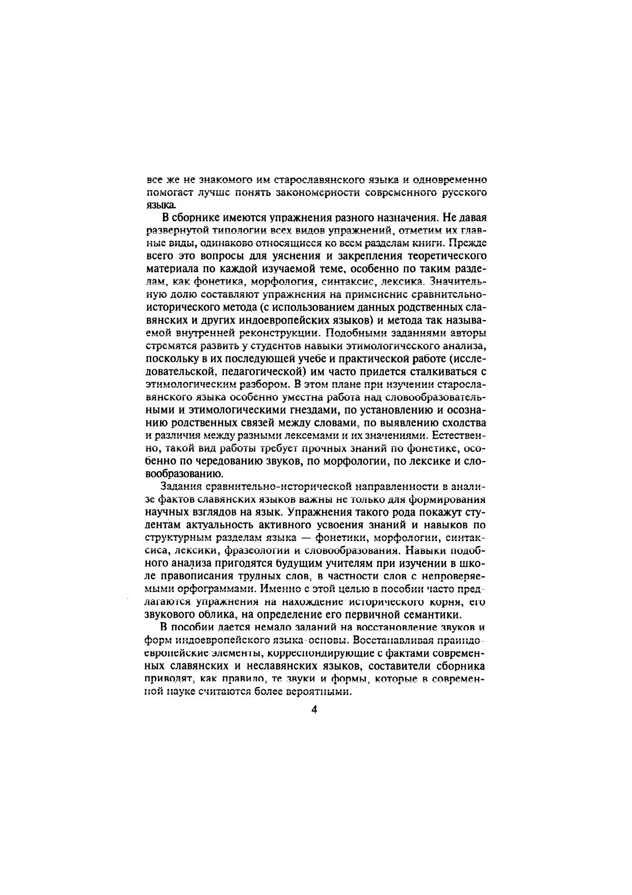 Учебное пособие опирается на классическую традицию преподавания старославянского языка в вузе и новую концепцию изучения славистических дисциплин. Впервые введены разделы «Лексика», «Фразеология» и «Словообразование». Разнообразные упражнения (их типология дана в предисловии) направлены на филологическое освоение старославянского языка как феномена славянской культуры. Помешенные в приложении образцы графического, фонетического, морфологического, синтаксического, лексико-фразеологического и стилистического анализа отдельных слов, предложений и текстов помогут студентам не только освоить структуру старославянского языка как целостную систему, но и почувствовать его значительный философский и нравственно-этический потенциал как первого литературного языка славянского мира. Для студентов, аспирантов и преподавателей-филологов.