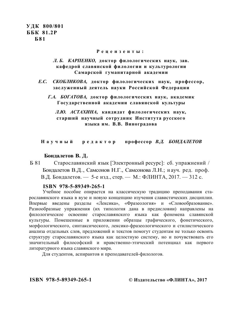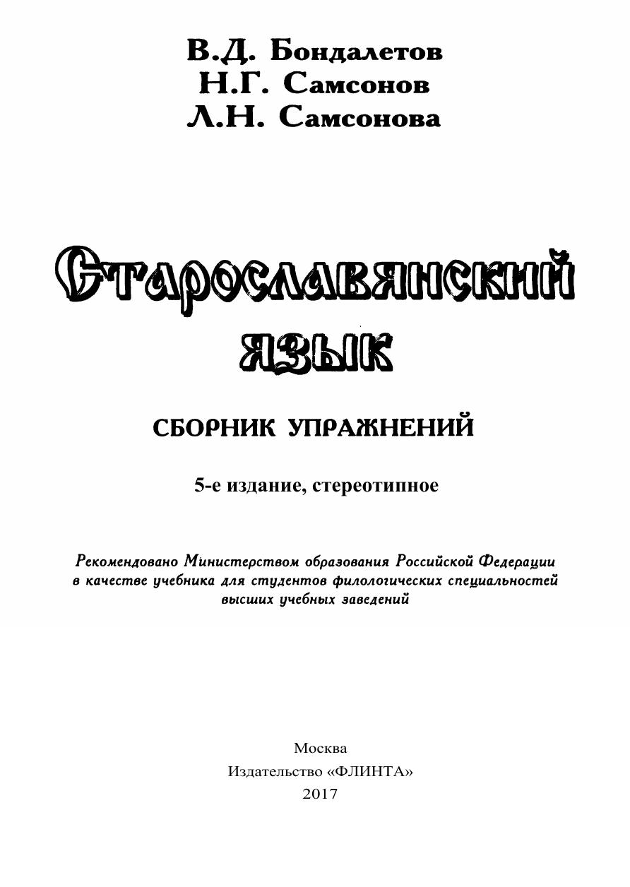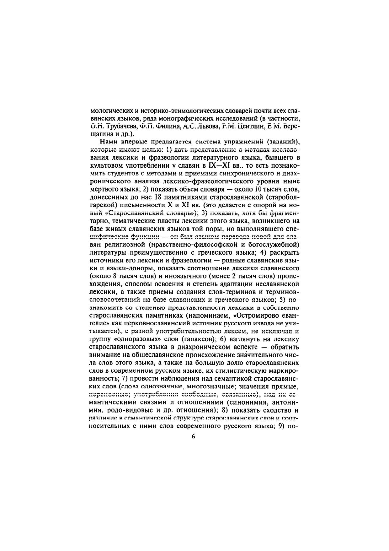 Учебное пособие опирается на классическую традицию преподавания старославянского языка в вузе и новую концепцию изучения славистических дисциплин. Впервые введены разделы «Лексика», «Фразеология» и «Словообразование». Разнообразные упражнения (их типология дана в предисловии) направлены на филологическое освоение старославянского языка как феномена славянской культуры. Помешенные в приложении образцы графического, фонетического, морфологического, синтаксического, лексико-фразеологического и стилистического анализа отдельных слов, предложений и текстов помогут студентам не только освоить структуру старославянского языка как целостную систему, но и почувствовать его значительный философский и нравственно-этический потенциал как первого литературного языка славянского мира. Для студентов, аспирантов и преподавателей-филологов.