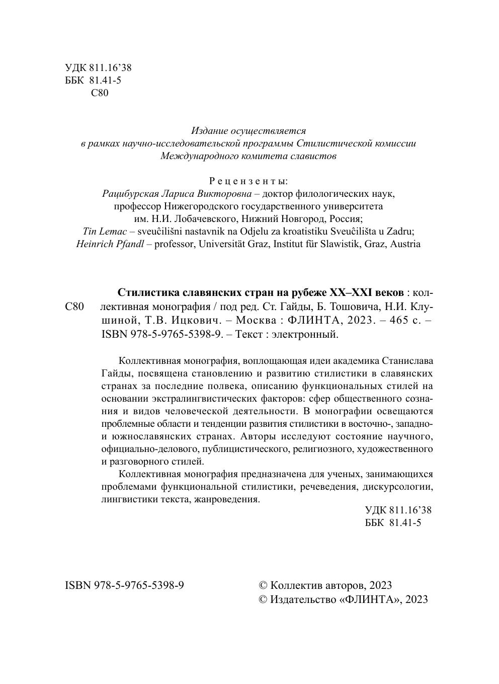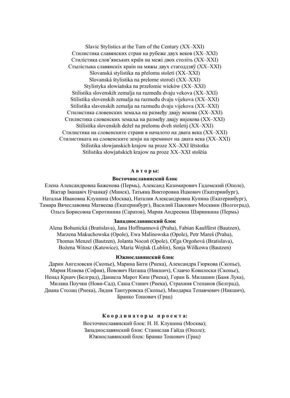 Коллективная монография, воплощающая идеи академика Станислава Гайды, посвящена становлению и развитию стилистики в славянских странах за последние полвека, описанию функциональных стилей на основании экстралингвистических факторов: сфер общественного сознания и видов человеческой деятельности. В монографии освещаются проблемные области и тенденции развития стилистики в восточно-, западно- и южнославянских странах. Авторы исследуют состояние научного, официально-делового, публицистического, религиозного, художественного и разговорного стилей. Коллективная монография предназначена для ученых, занимающихся проблемами функциональной стилистики, речеведения, дискурсологии, лингвистики текста, жанроведения.