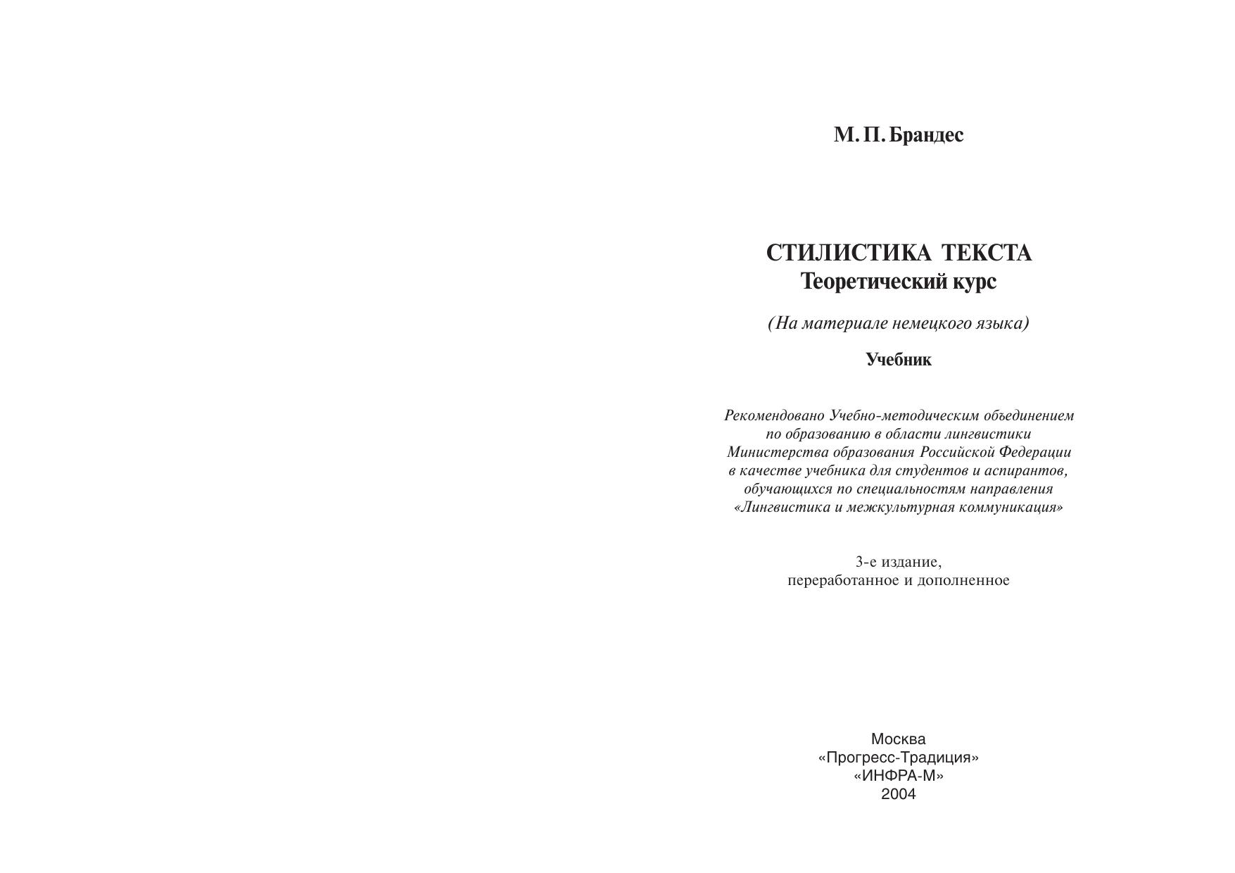 Учебник с позиции когнитивной лингвистики впервые предлагает целостную концепцию стиля как технологию и технику употребления языка в разных условиях письменной и устной коммуникации. В этом качестве стиль предстает как социальная, нормативно-ценностная система, своеобразный трансформатор, с помощью которого естественный язык превращается в живую, очеловеченную, осмысленную речь, в реальные высказывания разных форматов. Учебник является третьим, переработанным и дополненным изданием «Стилистики немецкого языка» (1-е издание вышло в 1983 г., 2-е – в 1990 г.). Книга рассчитана на студентов, обучающихся по специальностям «Лингвистика и межкультурная коммуникация», «Иностранный язык», «Русский язык и литература», аспирантов, преподавателей лингвистических университетов и факультетов иностранных языков, а также работников сферы СМИ, специалистов, интересующихся вопросами эффективного использования языка в общественной коммуникации.