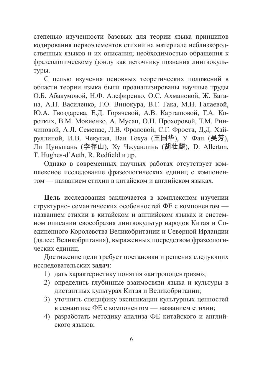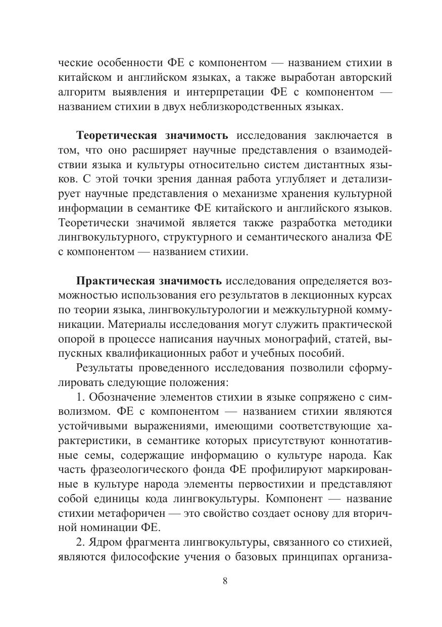 Исследование выполнено в рамках теории языка и посвящено изучению структурно-семантической специфики устойчивых словосочетаний чэнъюй с компонентом — названием стихии в китайском языке и идиом в английском языке с учетом лингвокультурологического аспекта. Источником фактического материала и эмпирической основой исследования послужили фразеологические словари китайского и английского языков. Исследование расширяет научные представления о взаимодействии языка и культуры относительно систем дистантных языков.