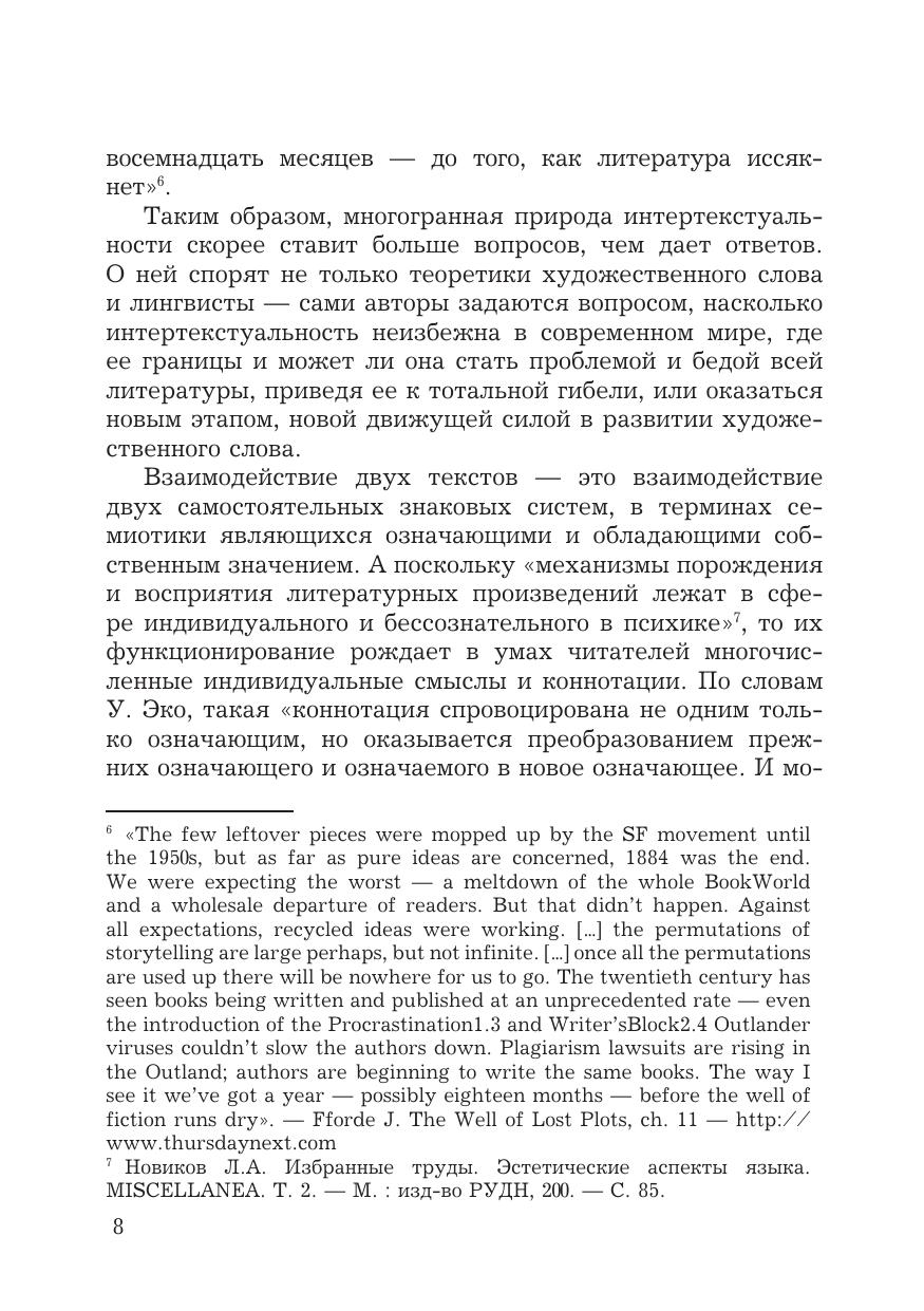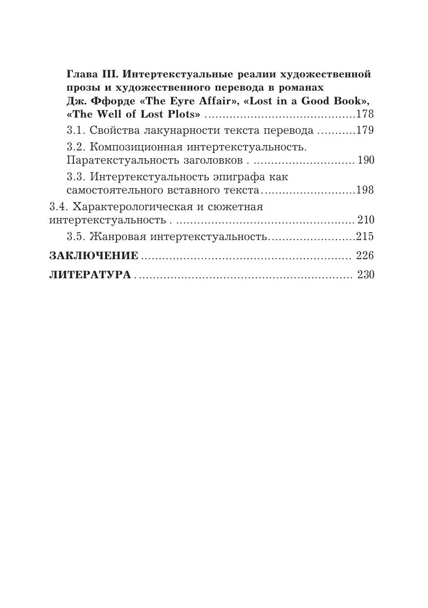 Автор также анализирует способы существования аллюзий и цитат, специфику актуализации языковой игры и построения окказионализмов в тексте оригинала и тексте перевода. Отдельная глава посвящена изучению интертекстуальной составляющей в оригинале и в переводе на текстовом и метатекстовом уровнях.