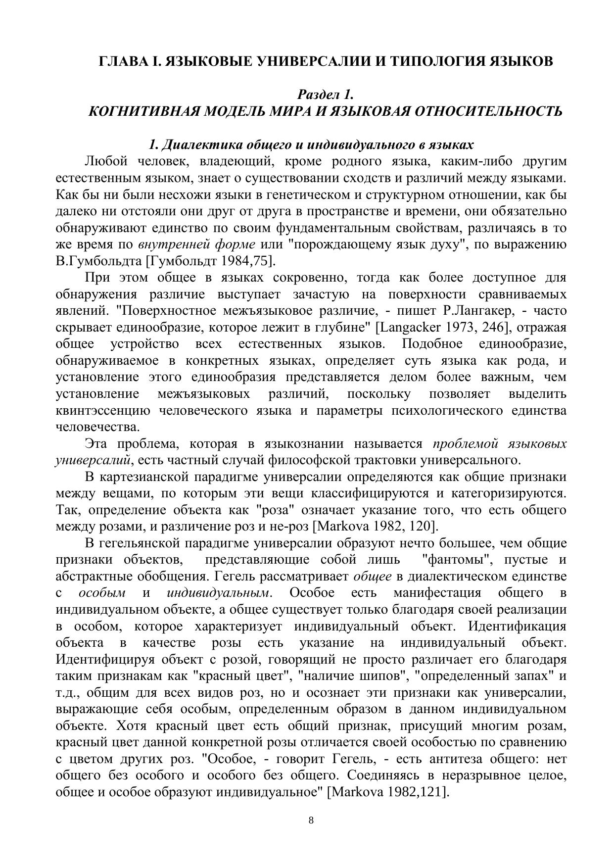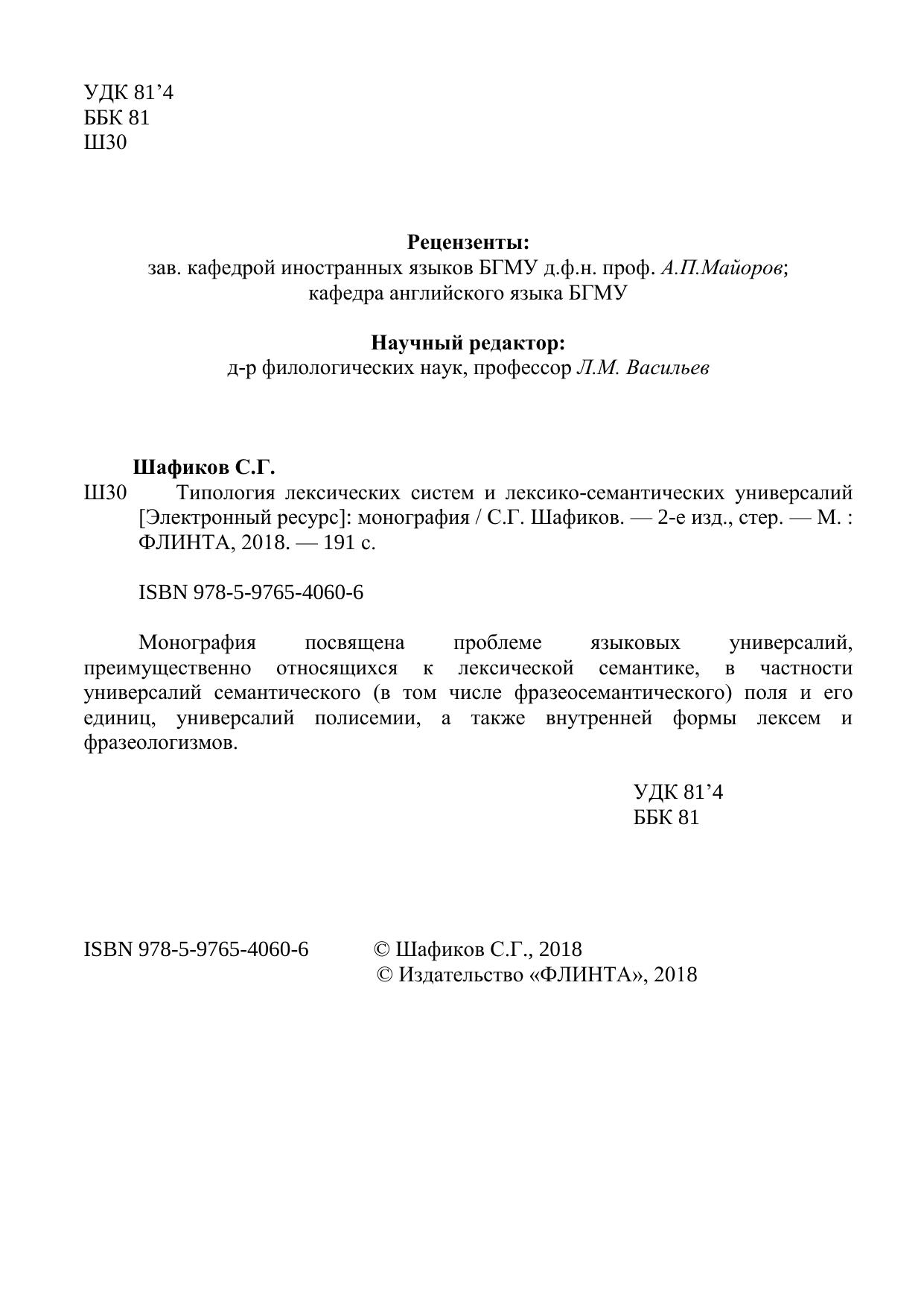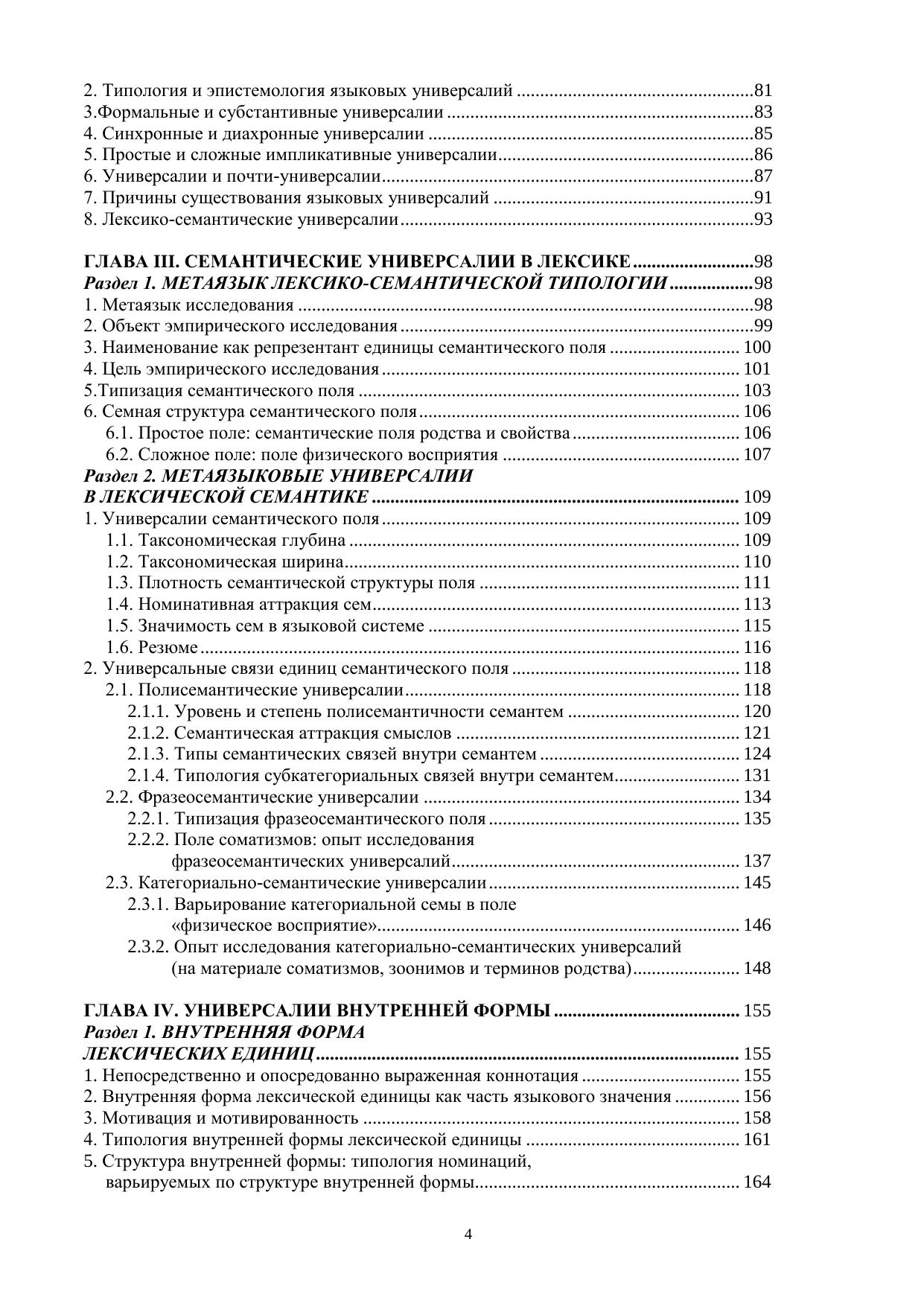 Монография посвящена проблеме языковых универсалий, преимущественно относящихся к лексической семантике, в частности универсалий семантического (в том числе фразеосемантического) поля и его единиц, универсалий полисемии, а также внутренней формы лексем и фразеологизмов.
