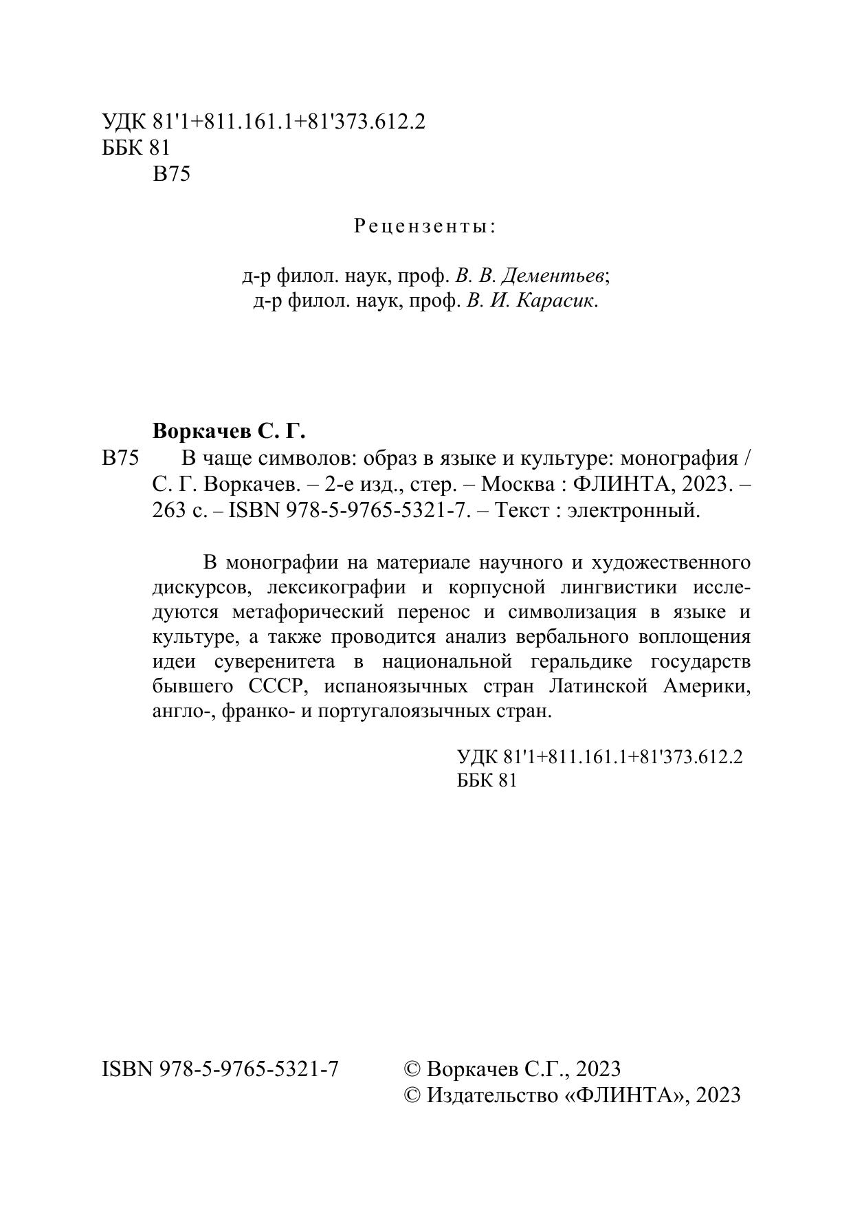 В монографии на материале научного и художественного дискурсов, лексикографии и корпусной лингвистики исследуются метафорический перенос и символизация в языке и культуре, а также проводится анализ вербального воплощения идеи суверенитета в национальной геральдике государств бывшего СССР, испаноязычных стран Латинской Америки, англо-, франко- и португалоязычных стран.