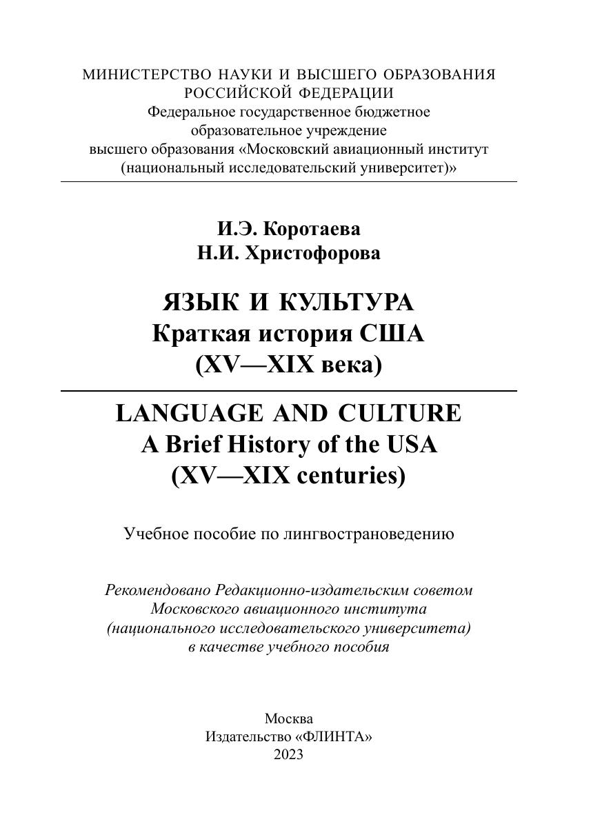 Язык и культура: Краткая история США (XV—XIX века) = Language and Culture: A Brief History of the USA (XV—XIX centuries)