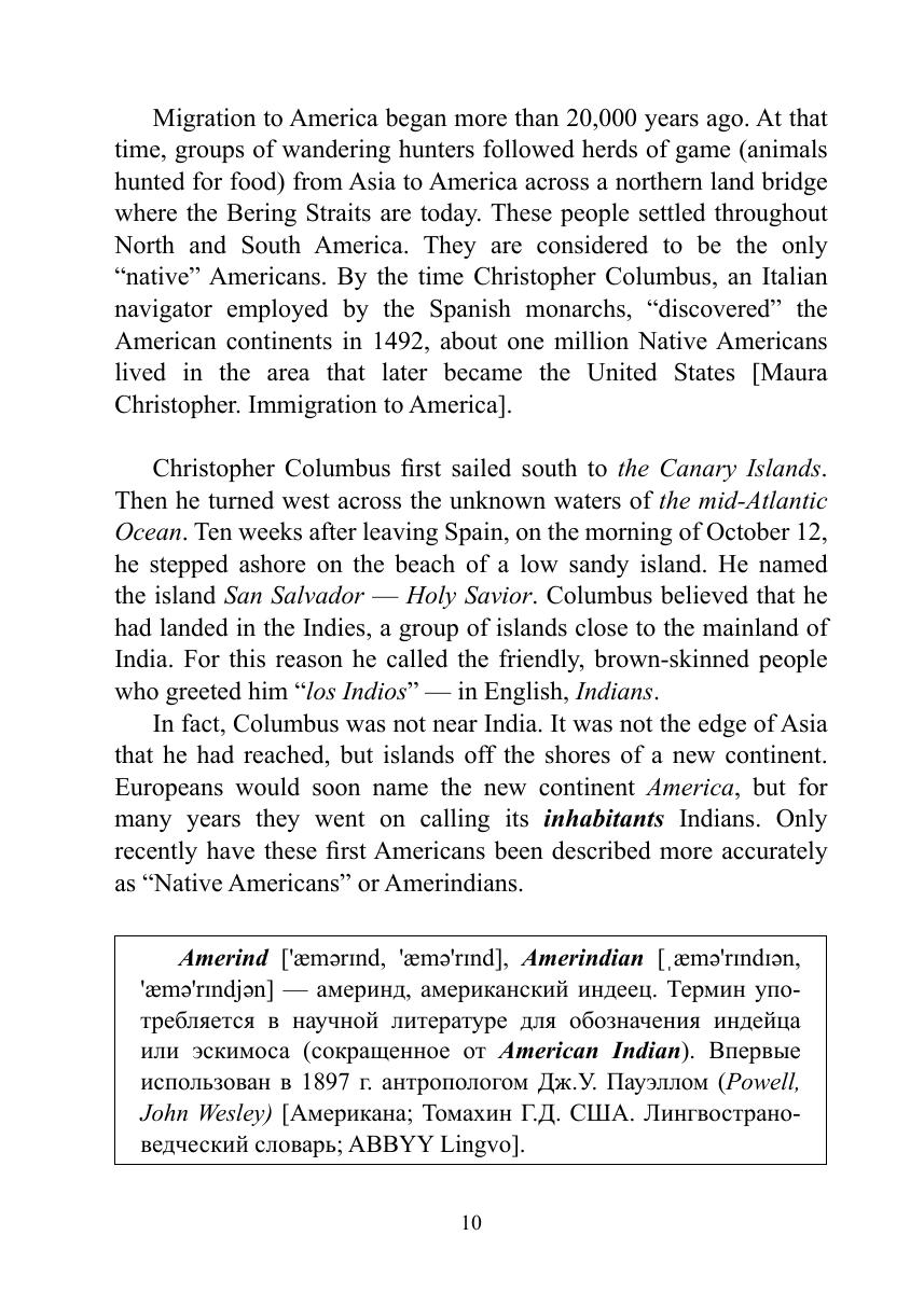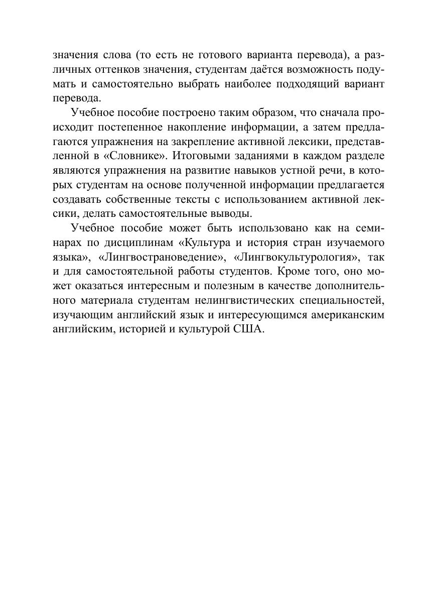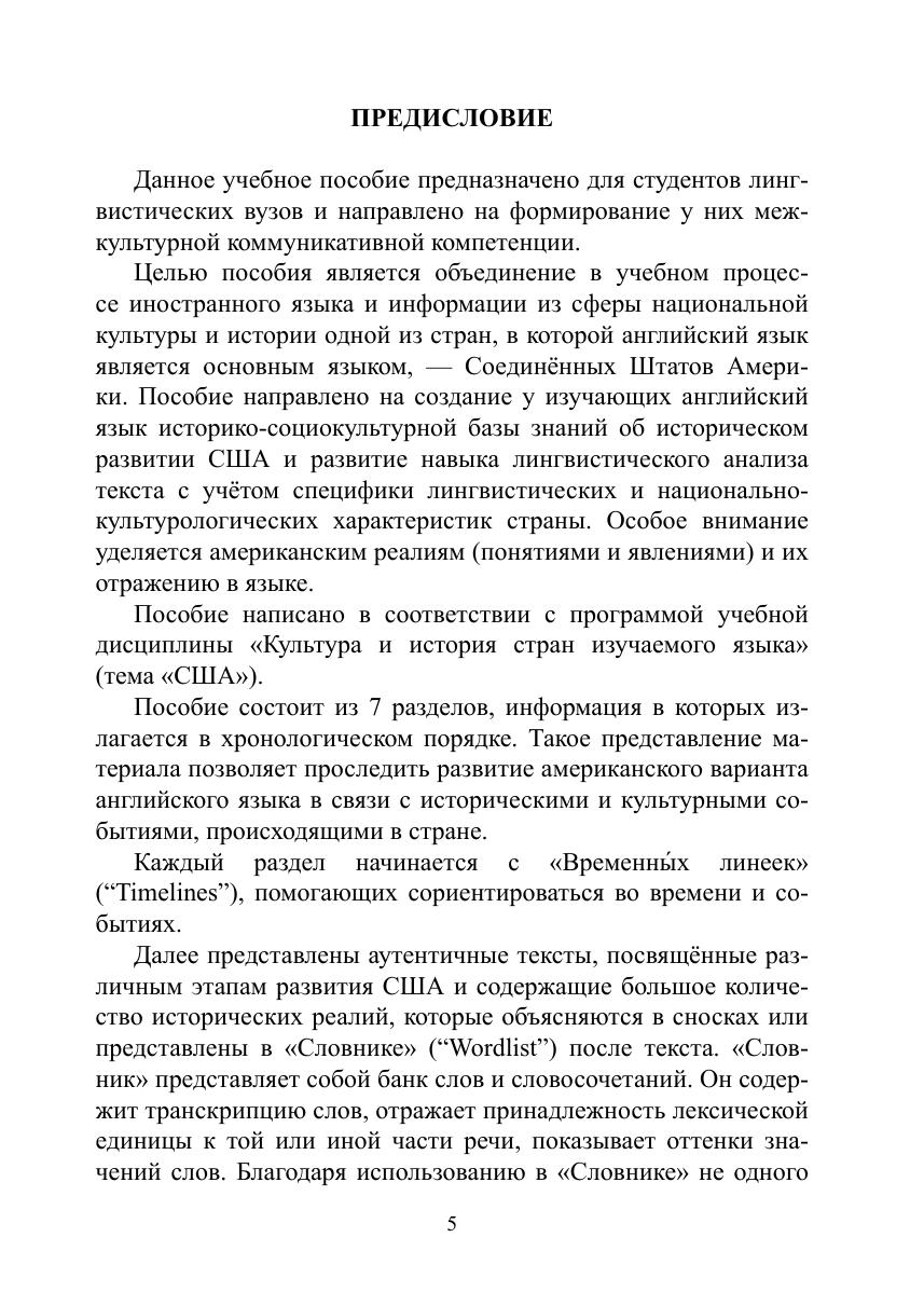 Учебное пособие по лингвострановедению посвящено истории развития американского общества в XV—XIX веках. Особое внимание уделяется американским реалиям (понятиями и явлениями) и их отражению в языке.
