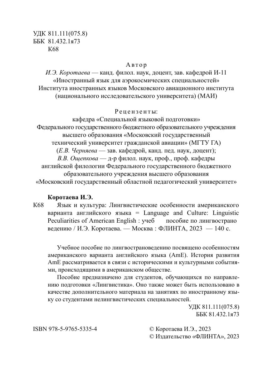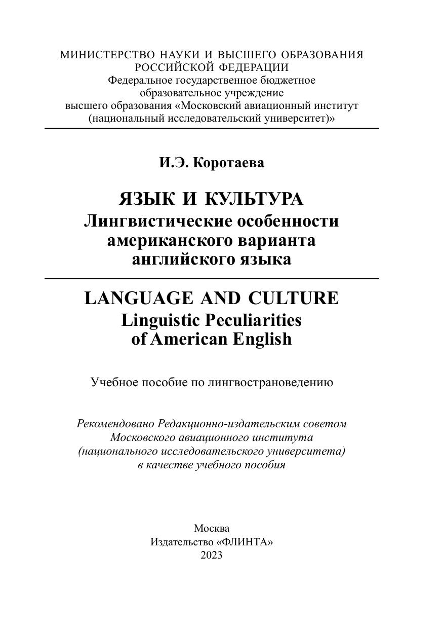 Язык и культура: Лингвистические особенности американского варианта английского языка = Language and Culture: Linguistic Peculiarities of American English