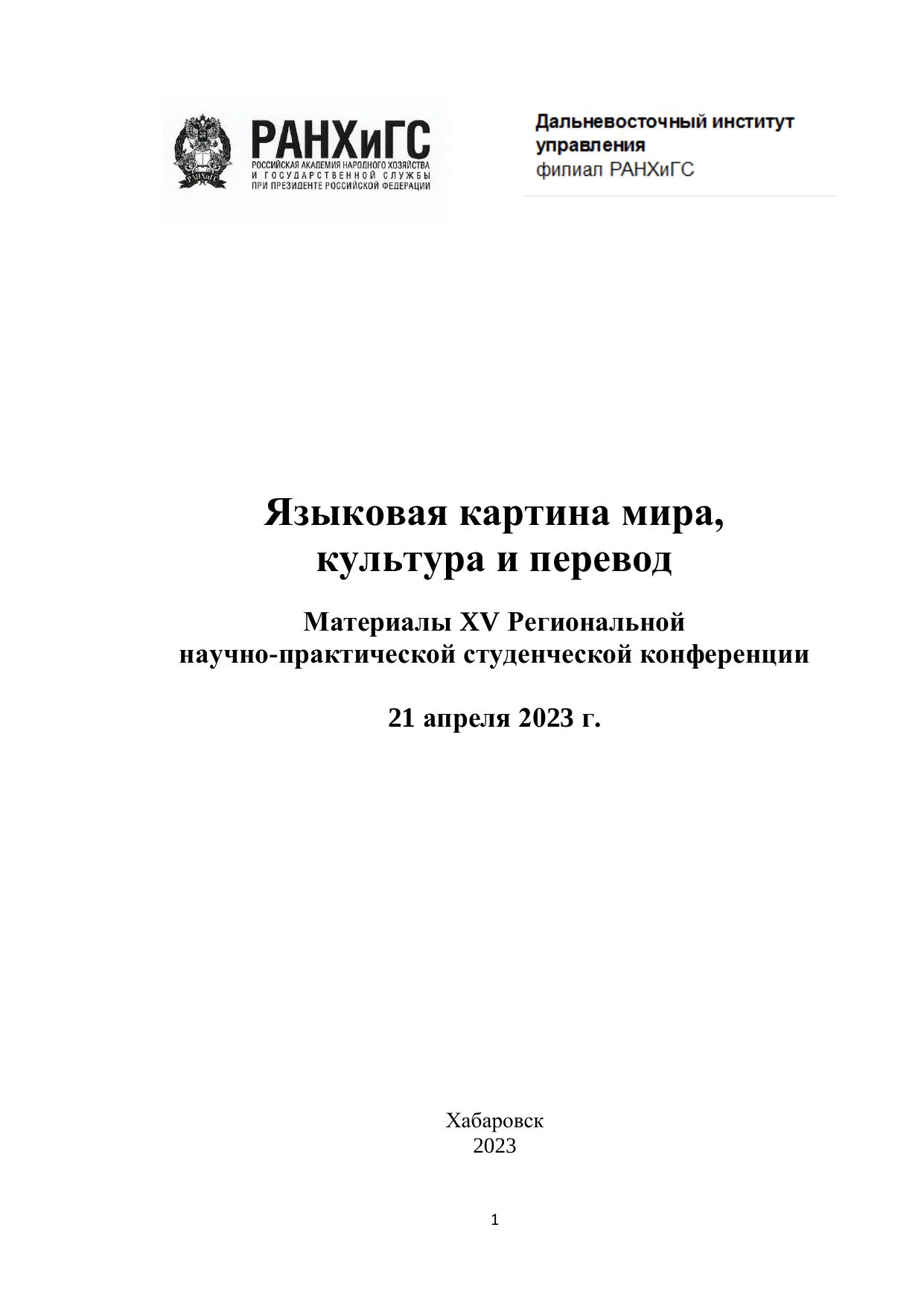 Языковая картина мира, культура и перевод: материалы XVРегиональной научно-практической студенческой конференции, 21 апреля 2023 г.