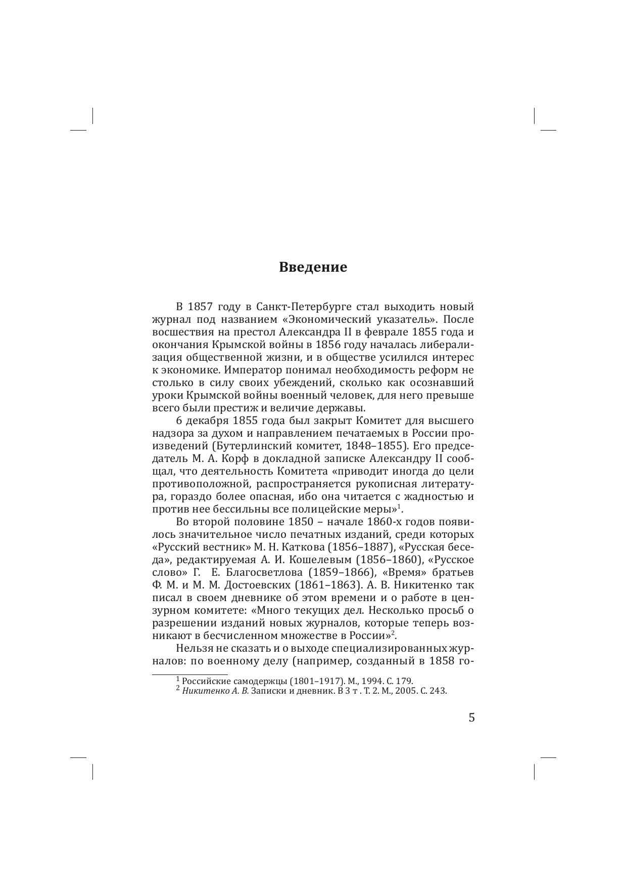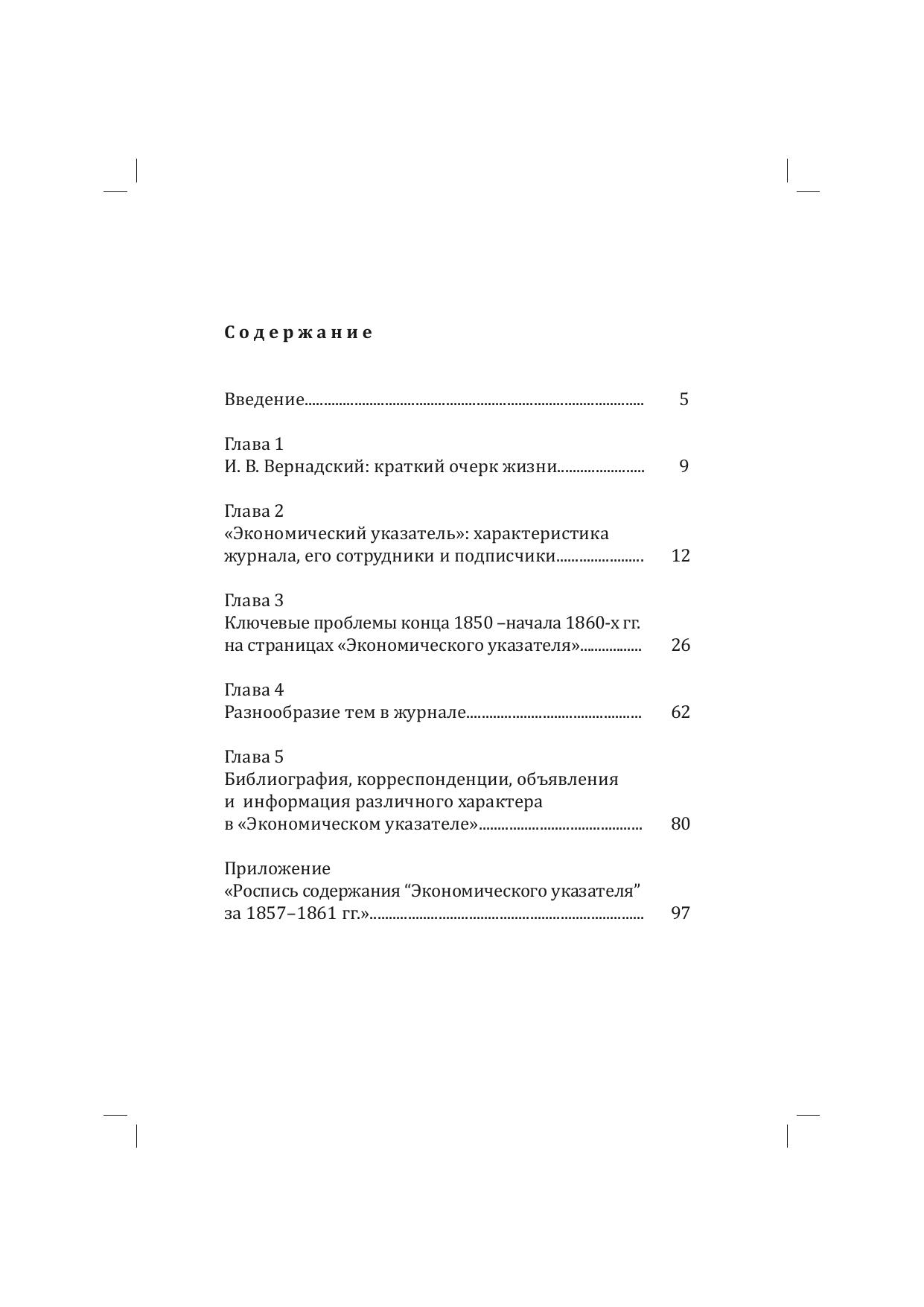В данной монографии впервые детально рассмотрен деловой журнал И. В. Вернадского «Экономический указатель», выходивший в 1857–1861 гг. Выявлены ключевые темы издания, рассмотрена его полемика с другими газетами и журналами, проанализированы состав сотрудников и круг подписчиков.
