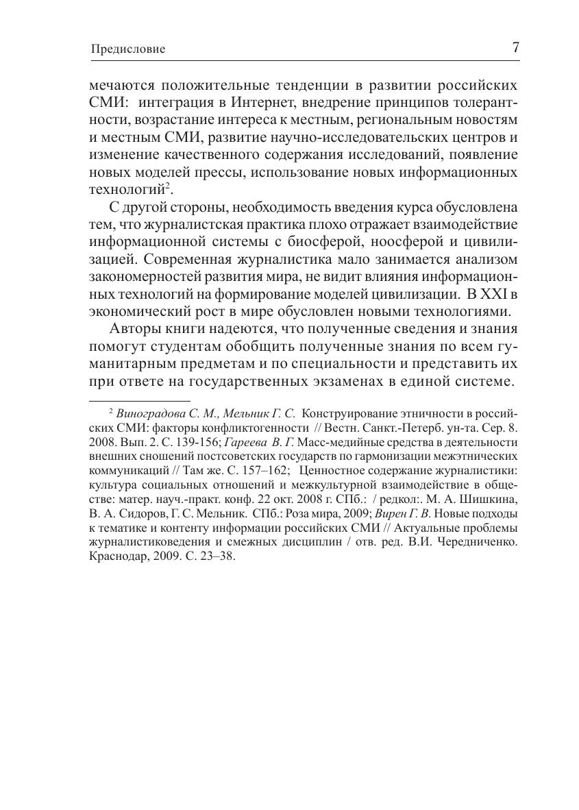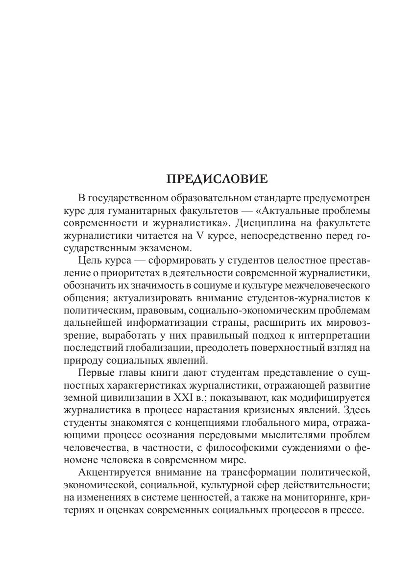 В учебном пособии поднимаются такие актуальные проблемы мировой цивилизации и журналистики, развития России на современном этапе, как глобализация, планетарный социокультурный процесс, межкультурная коммуникация, влияние новых медиаструктур на мировое информационное пространство; изменение информационной среды в результате научно-технической революции, трансформация личности человека в глобальном мире; модификация института журналистики под воздействием требований современности. Пособие предназначено студентам факультетов журналистики.