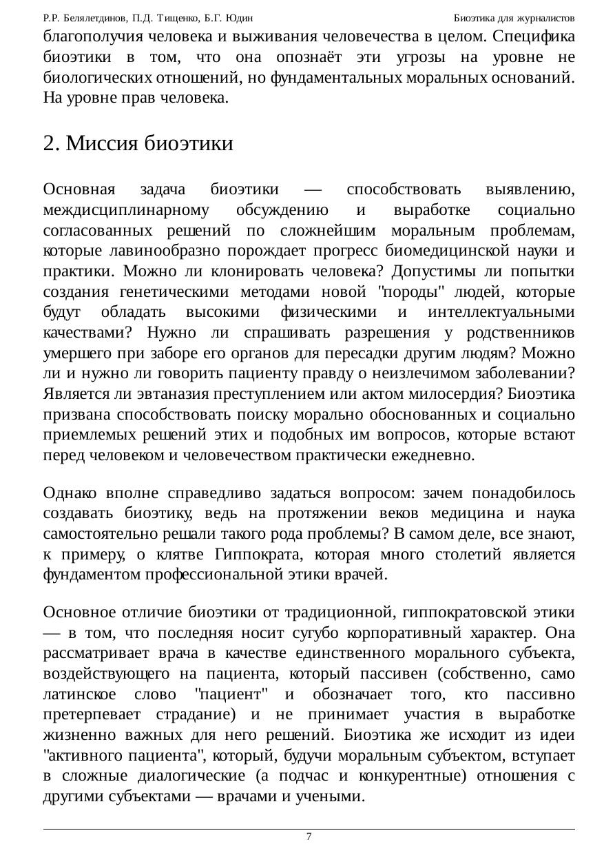 Биоэтика для журналистов